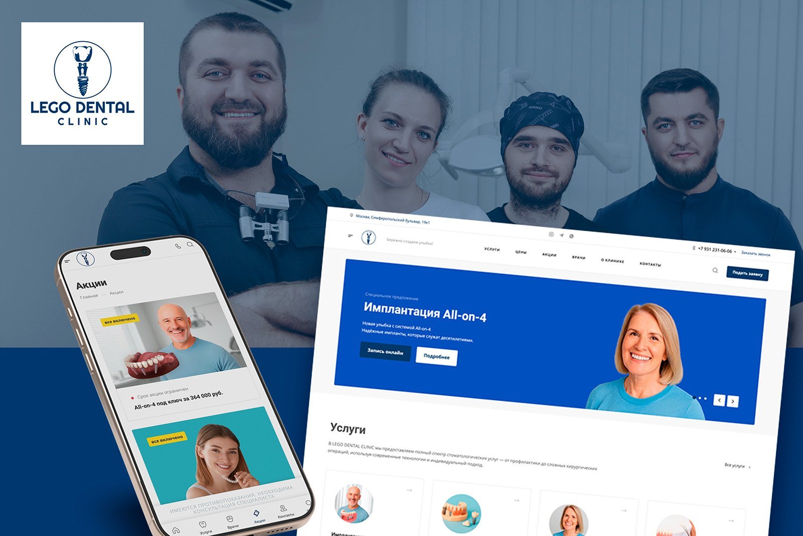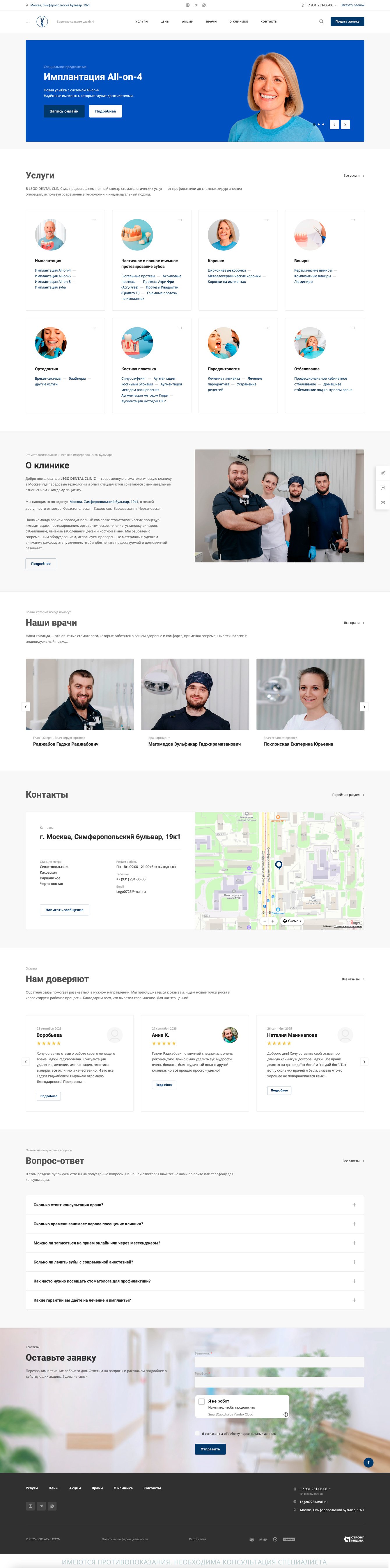 — наполнение сайта текстами по всем направлениям: имплантация, ортопедия, эстетика, ортодонтия и др.;
