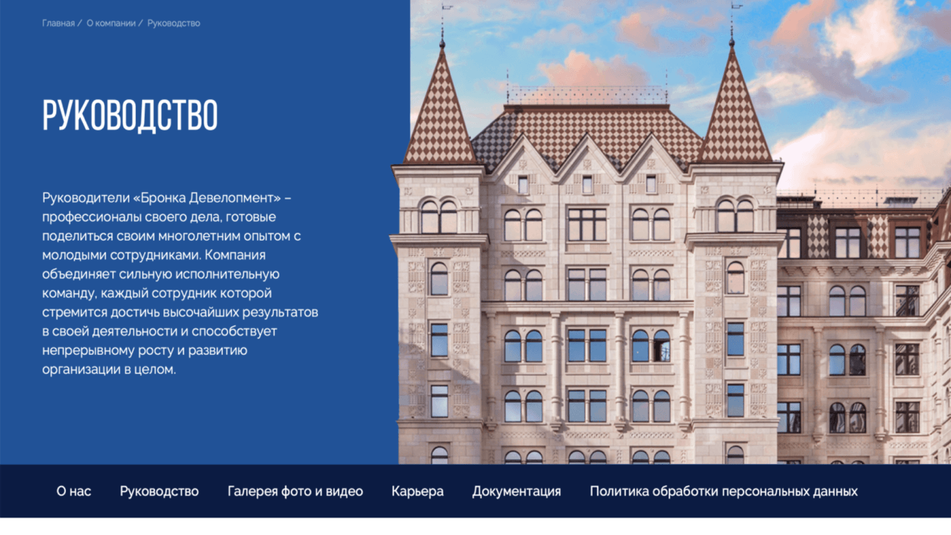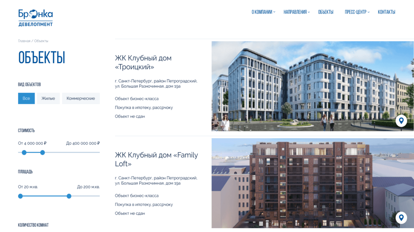 Девелопер обратился к нам за разработкой сайта. В ходе предпроектной аналитики мы выяснили основные потребности клиента: создать имиджевый сайт для формирования лояльности к бренду, рассказать о компании и ее проектах, сформировать образ надежного, устойчивого застройщика, простимулировать непрямую продажу жилой недвижимости и аренду коммерческой недвижимости посредством первичного контакта через сайт.