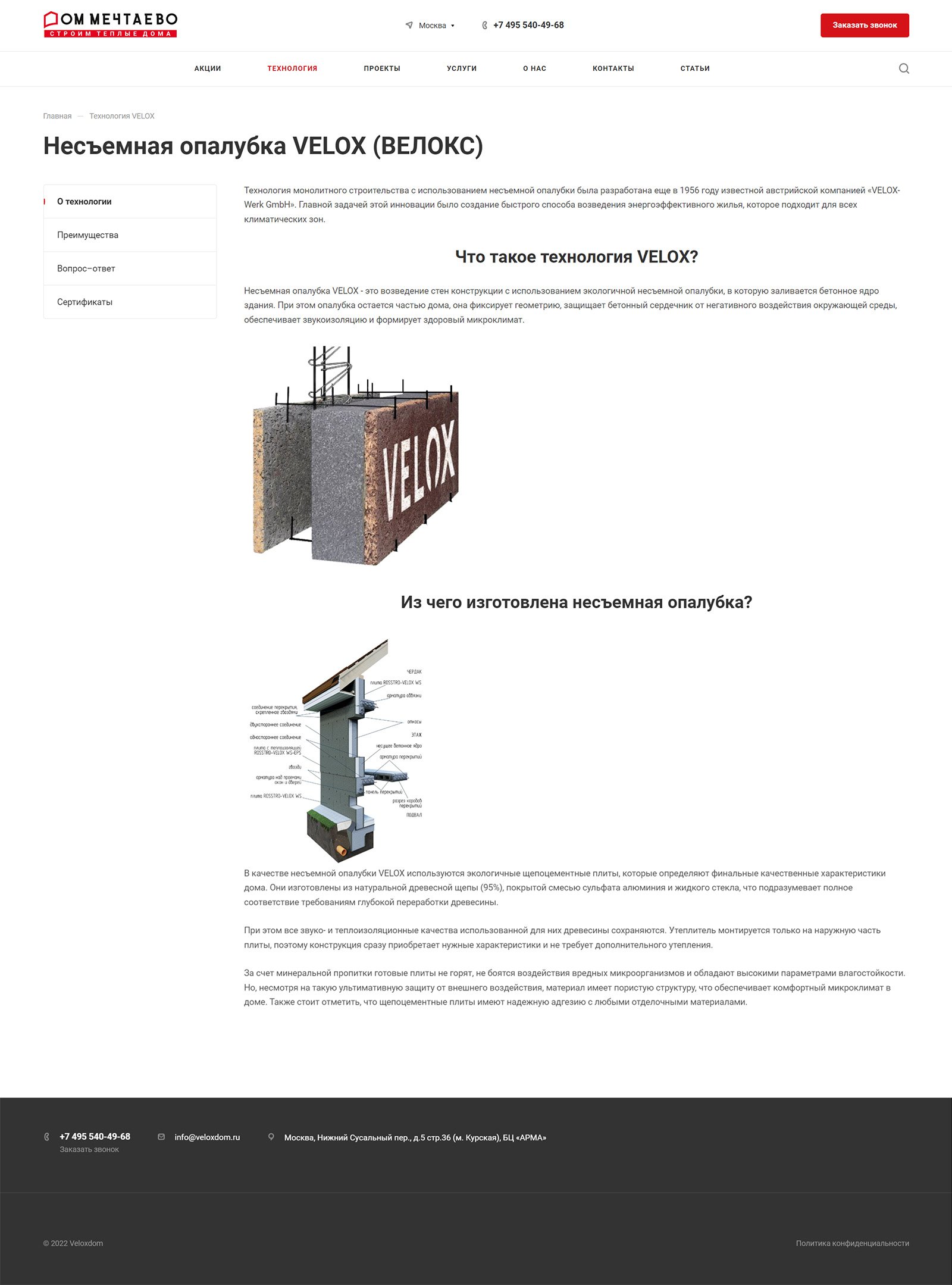 — создание информационных разделов: о технологии строительства, преимуществах компании, полезных статьях и реализованных объектах;