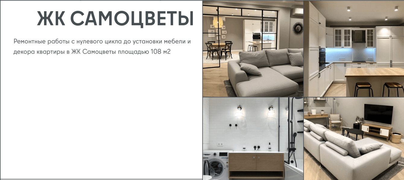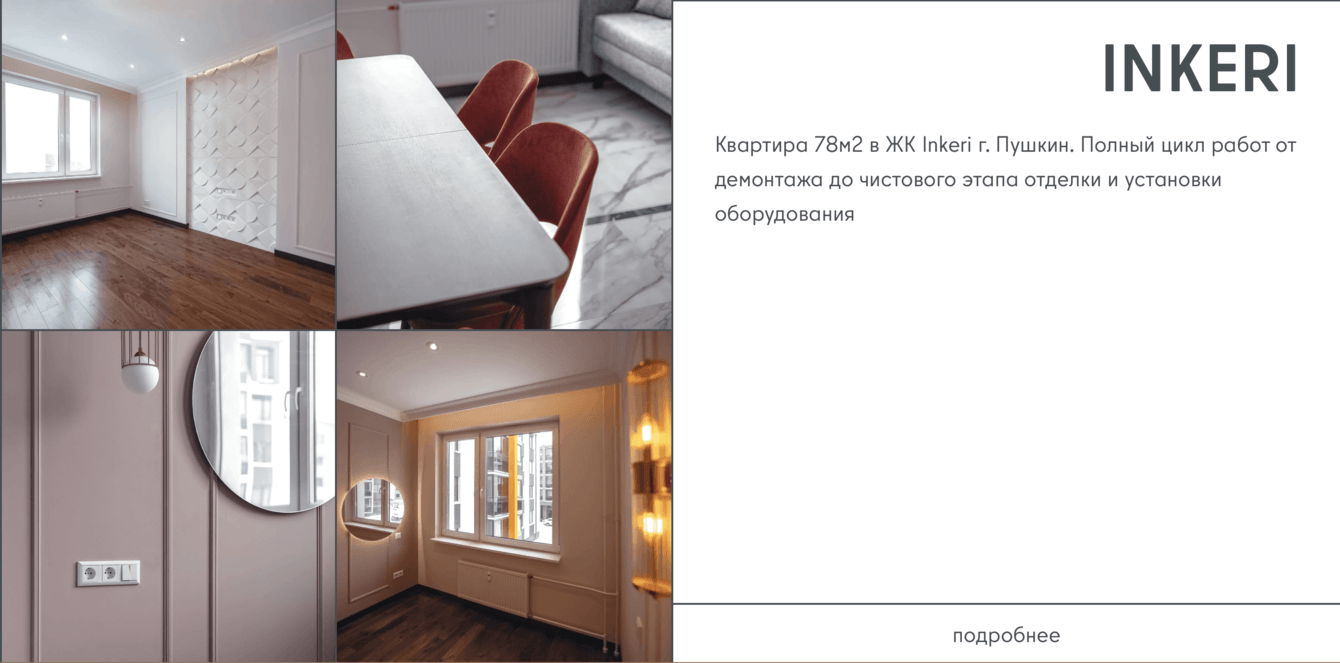 Разрабатывая дизайн, мы полагались на один из основных принципов работы компании — чистоту: на объекте, в мыслях, сметах, документах