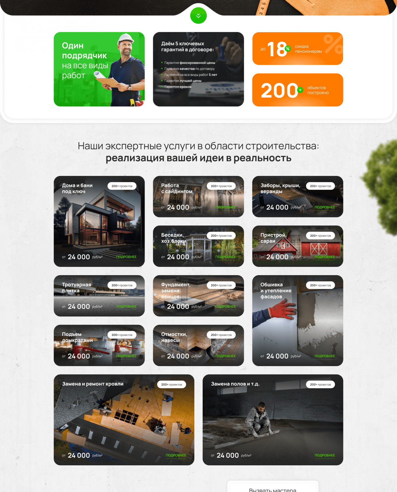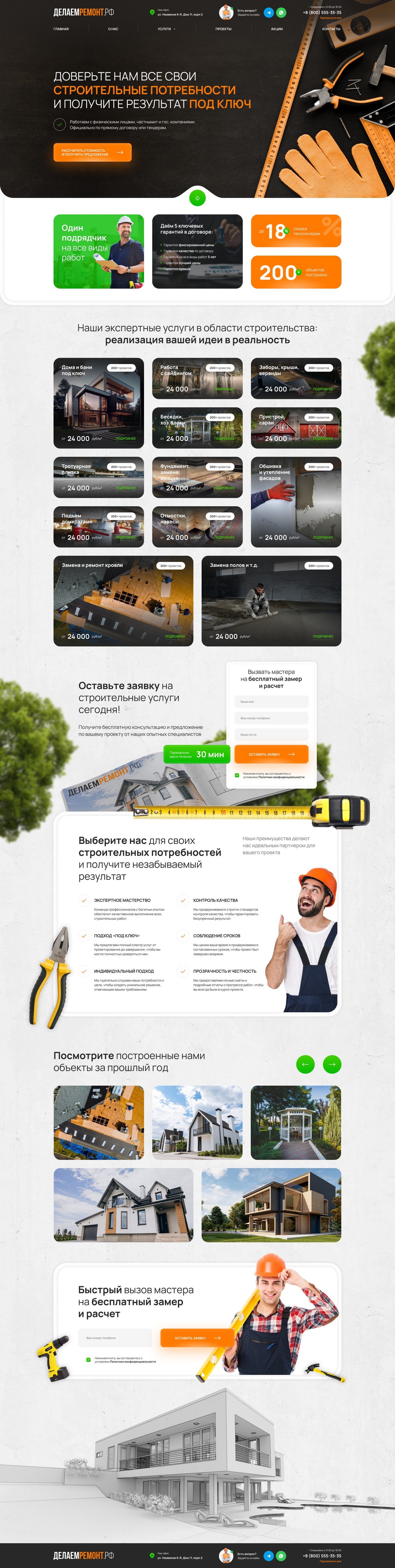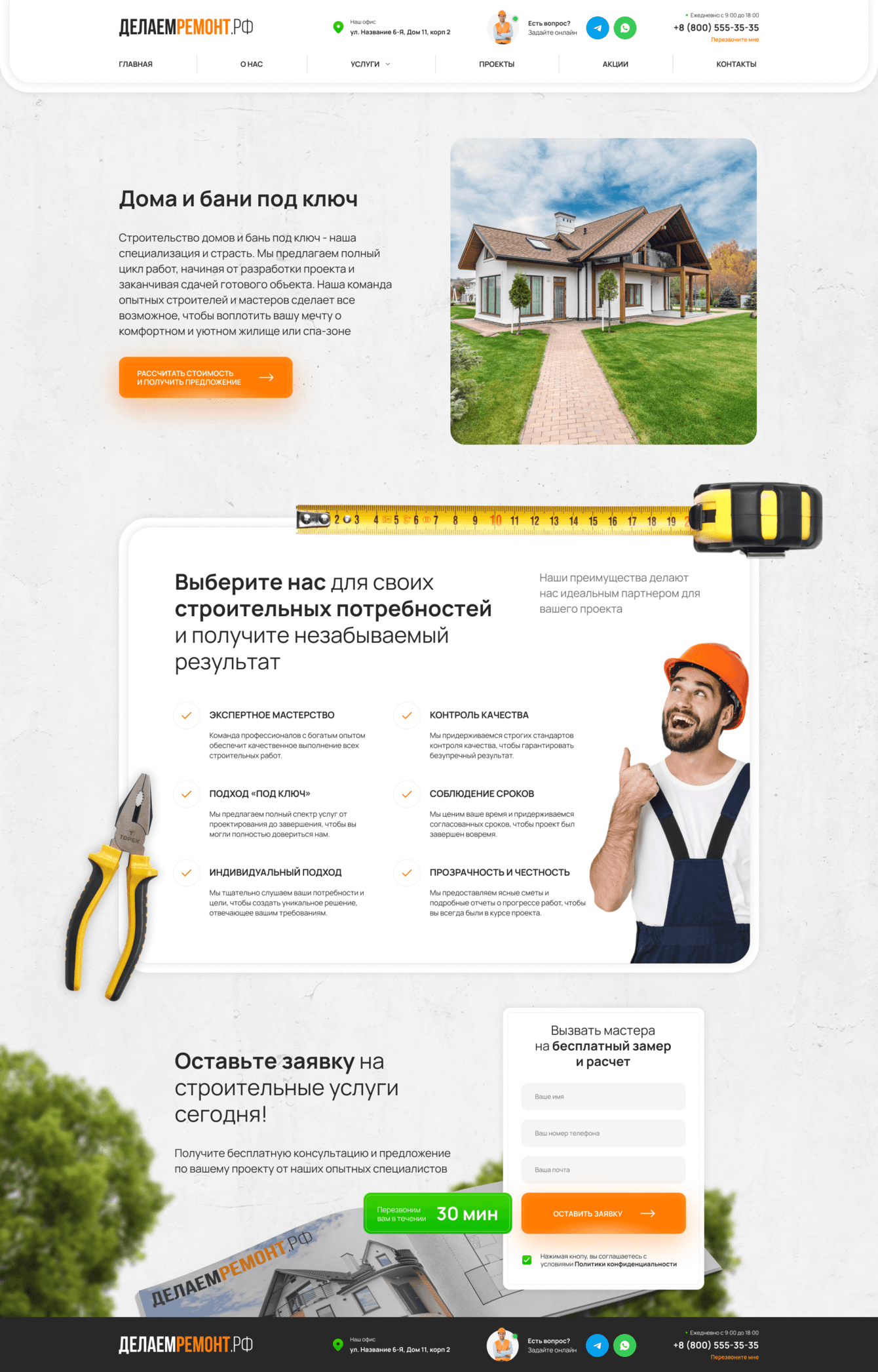 Разработка лаконичного сайта по представлению услуг и кейсов строительной компании.