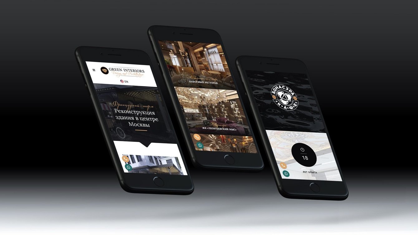 — Сочетание черного и золотого в палитре и оригинальные анимационные эффекты на сайте сформировали имидж студии интерьеров премиум-класса.