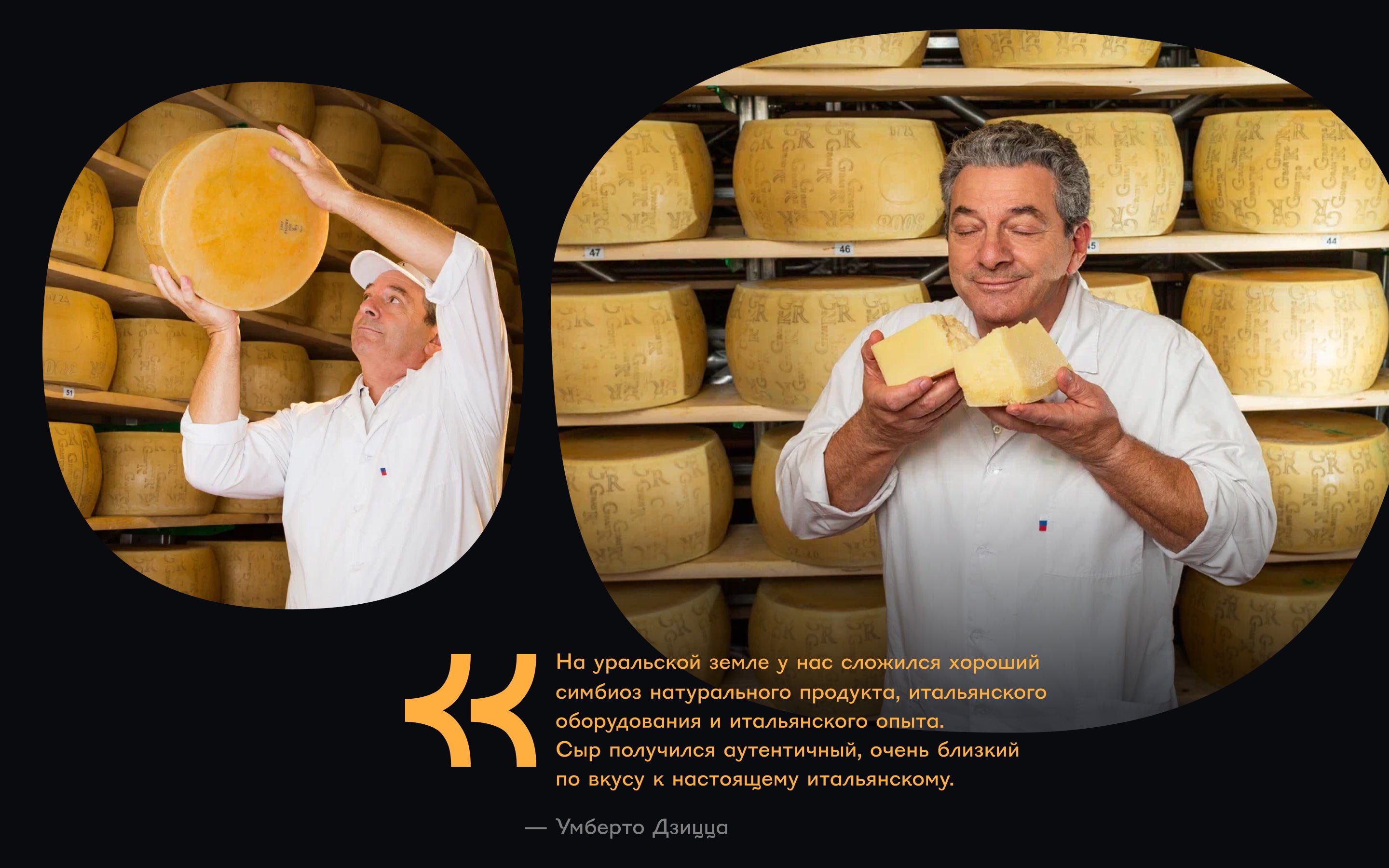 Особое внимание уделяется главному технологу сыроварни — Умберто Дзицце, благодаря которому рецептуры и технологии сохраняют настоящее итальянское происхождение.