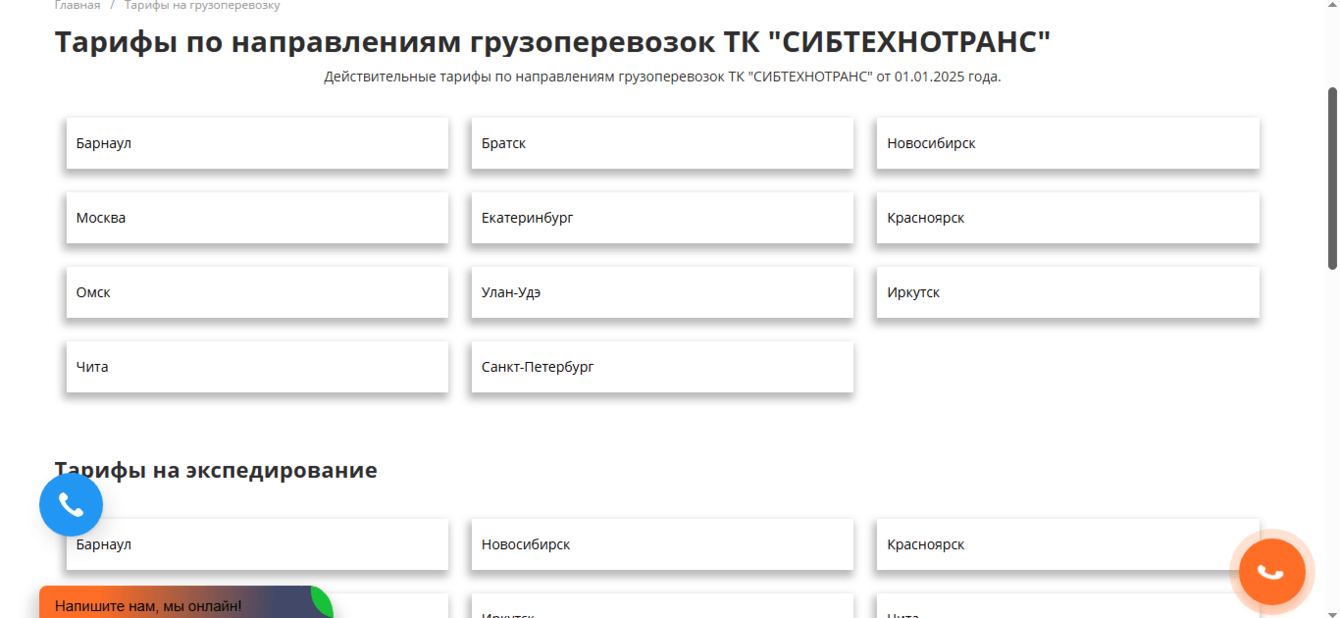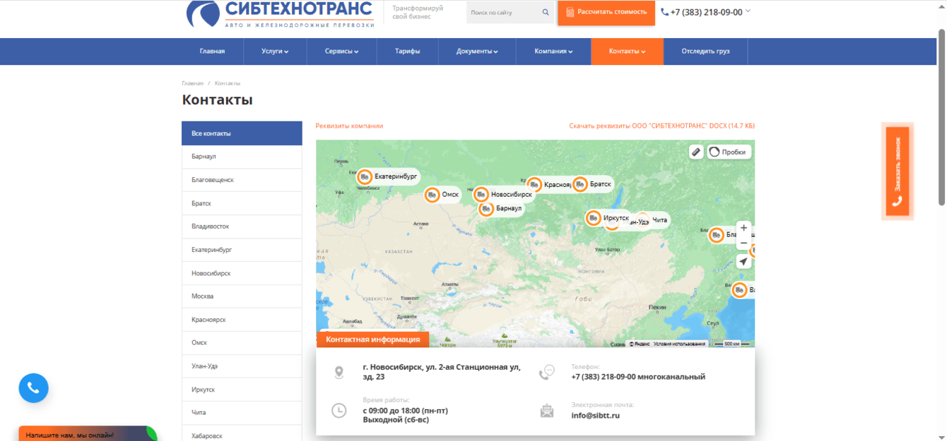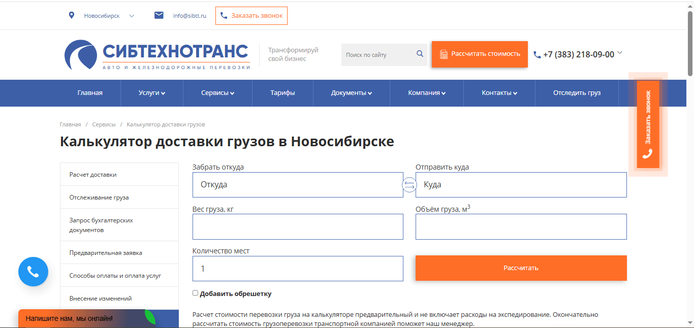 8. Создана страница https://sibtt.ru/help/kalkulyator-dostavki-gruzov/
