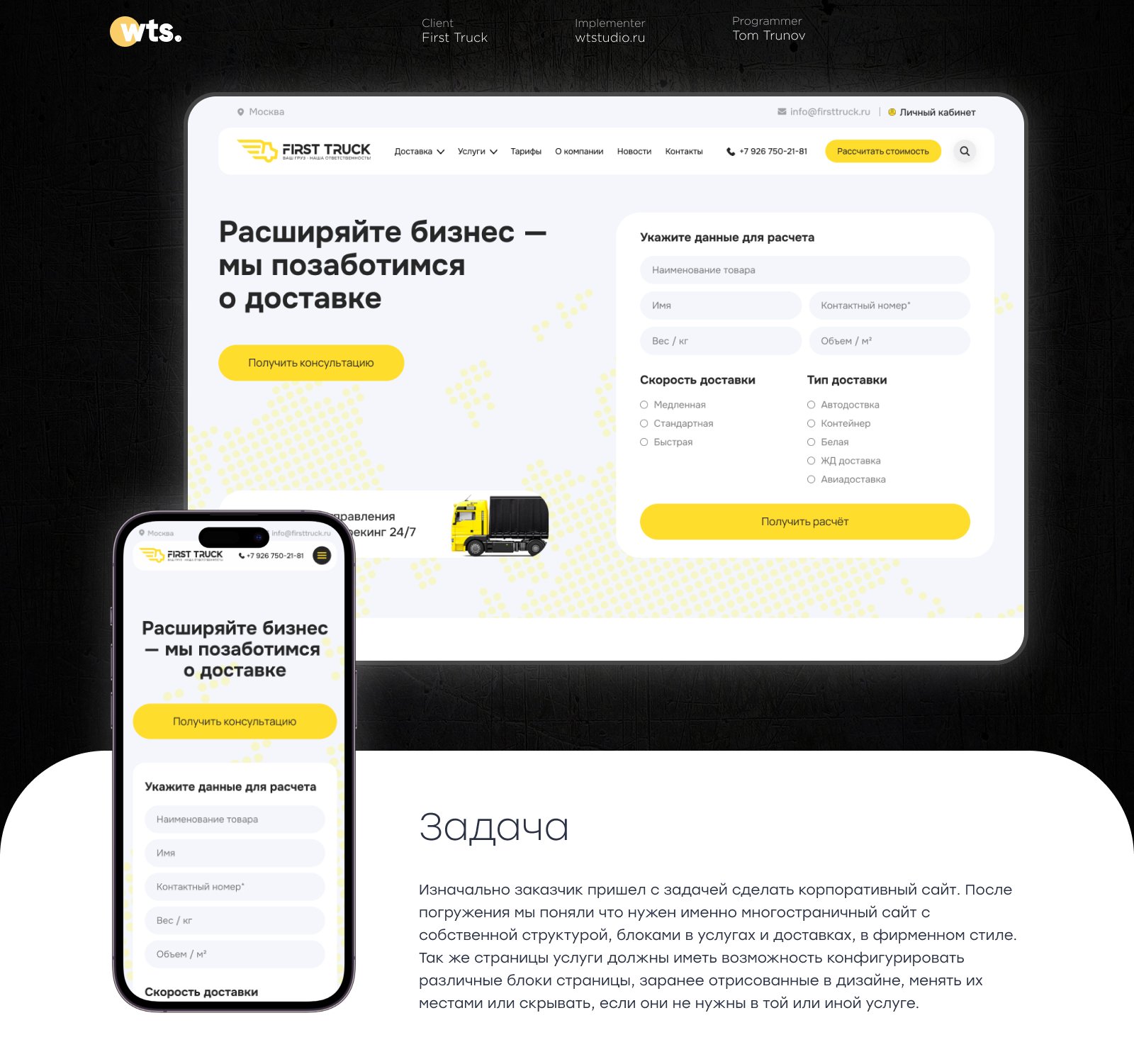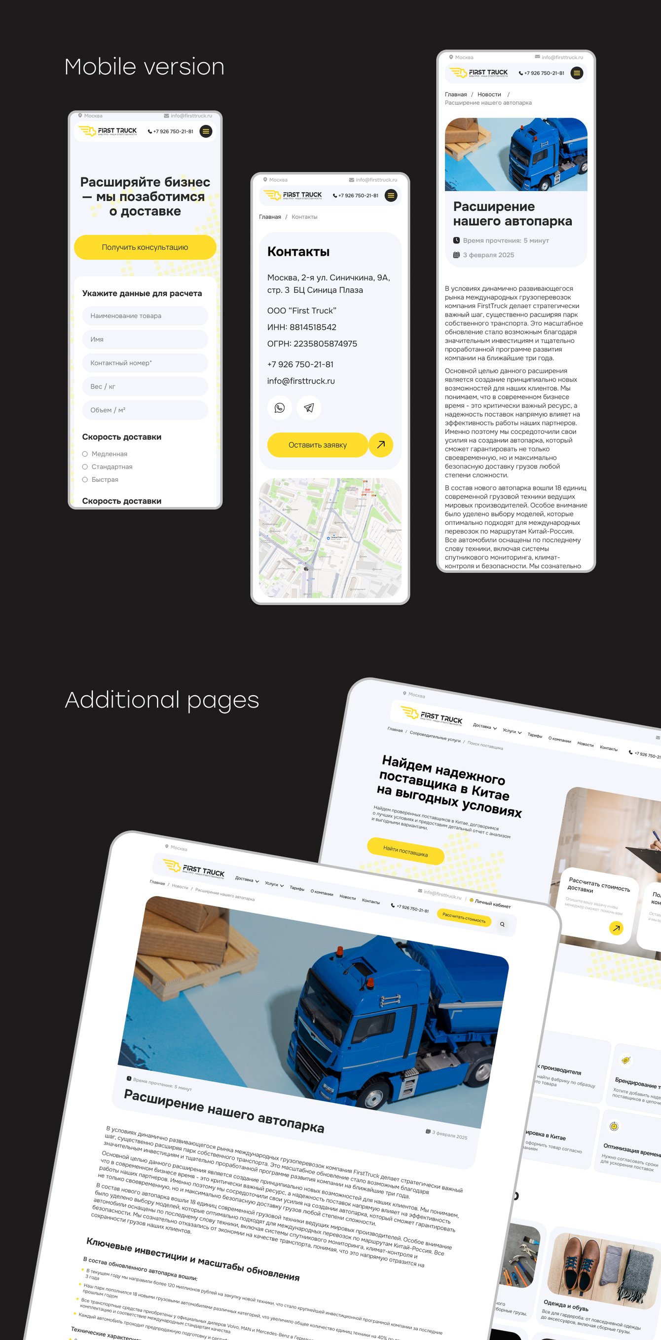 Изначально заказчик пришел с задачей сделать корпоративный сайт. После погружения мы поняли что нужен именно многостраничный сайт с собственной структурой, блоками в услугах и доставках, в фирменном стиле.