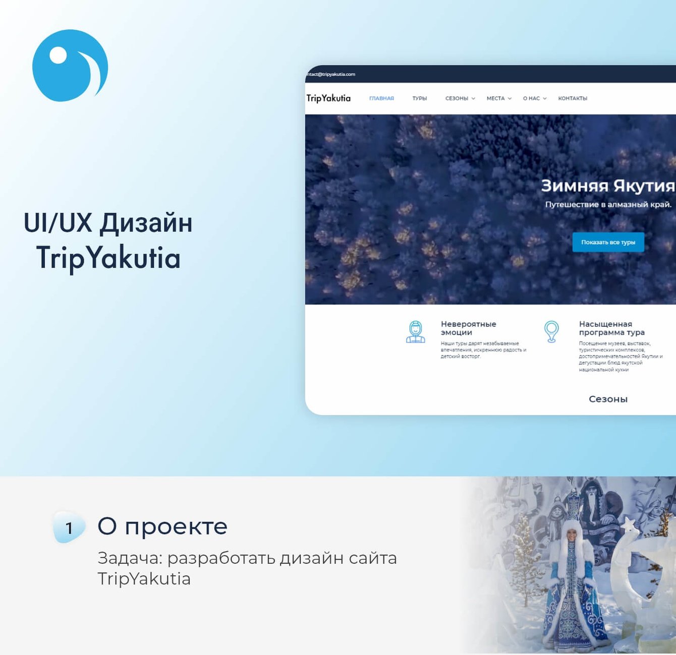 Далее была проработана визуальная составляющая дизайна. Использовались реальные фотографии Якутии с сочной цветовой гаммой. Основной упор делался на создание запоминающегося визуального образа, который подкреплялся краткими текстовыми пояснения.