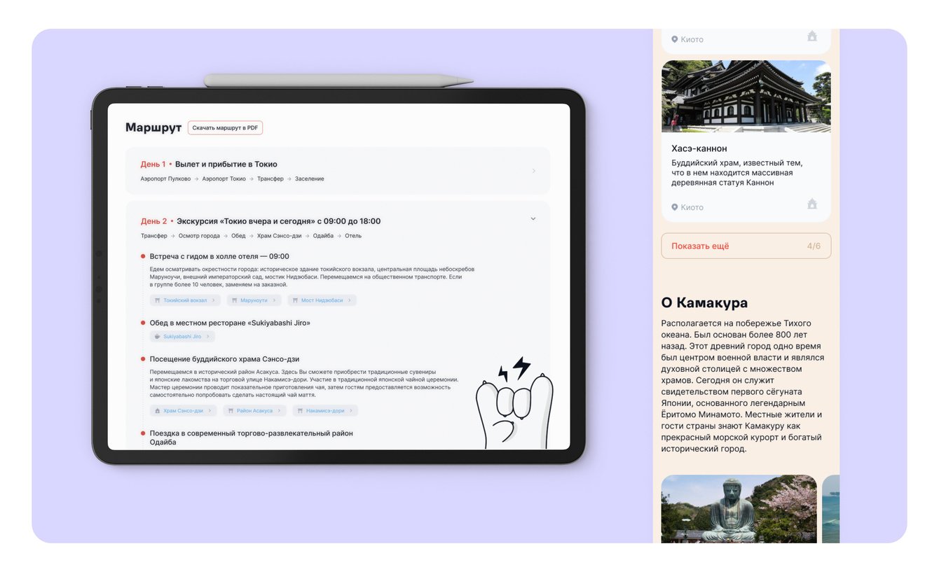 Для каждого тура предусмотрели сложносоставной элемент «Маршрут», который описывает весь тур по дням, с опорными точками внутри каждого дня и даже перечнем достопримечательностей, запланированных к посещению в конкретном дне тура.