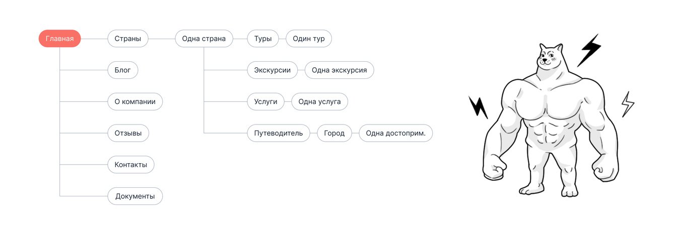 Структура сайта один из элементов всей стратегии разработки, учитывающий все форматы контента, необходимые туристу.