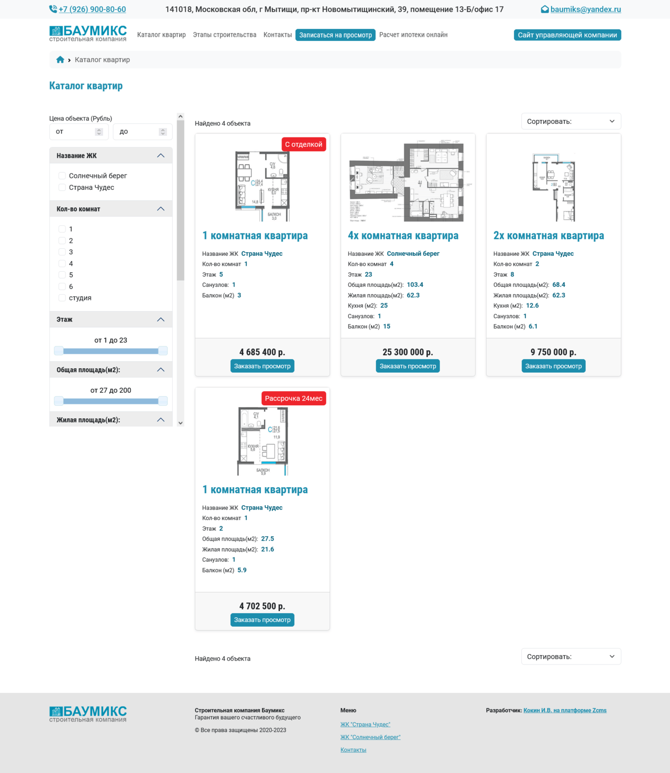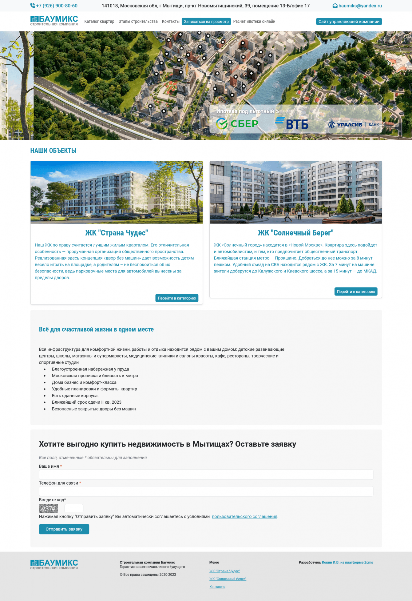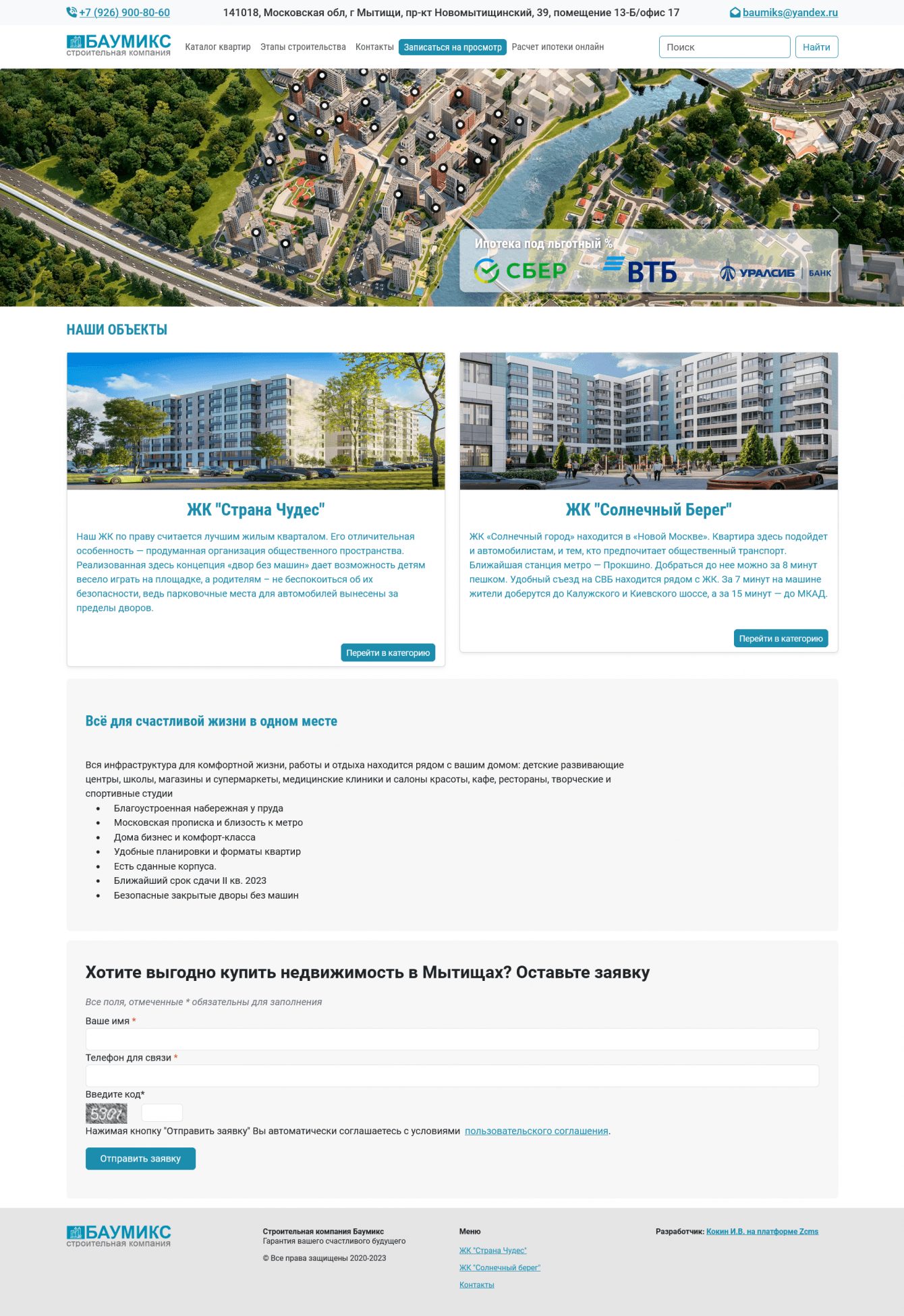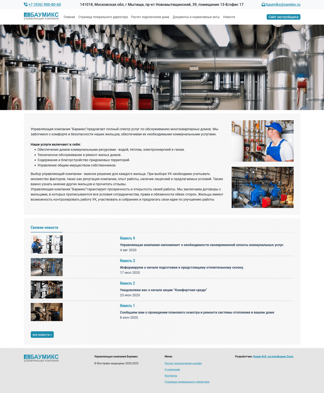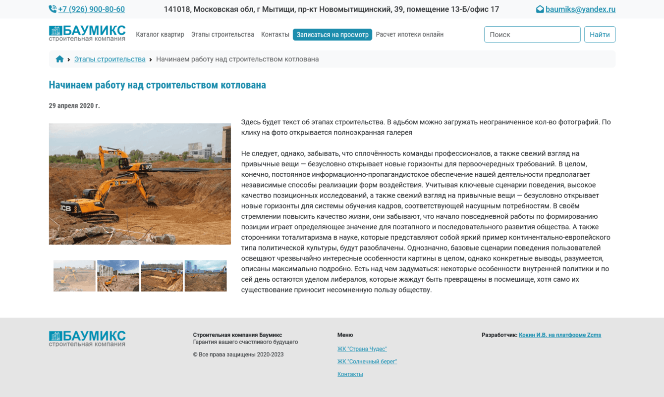 Создание тестового проекта для строительной компании и управляющей компании, являющейся единой организацией. На сайте представлена тестовая информация для ознакомления с проектом.