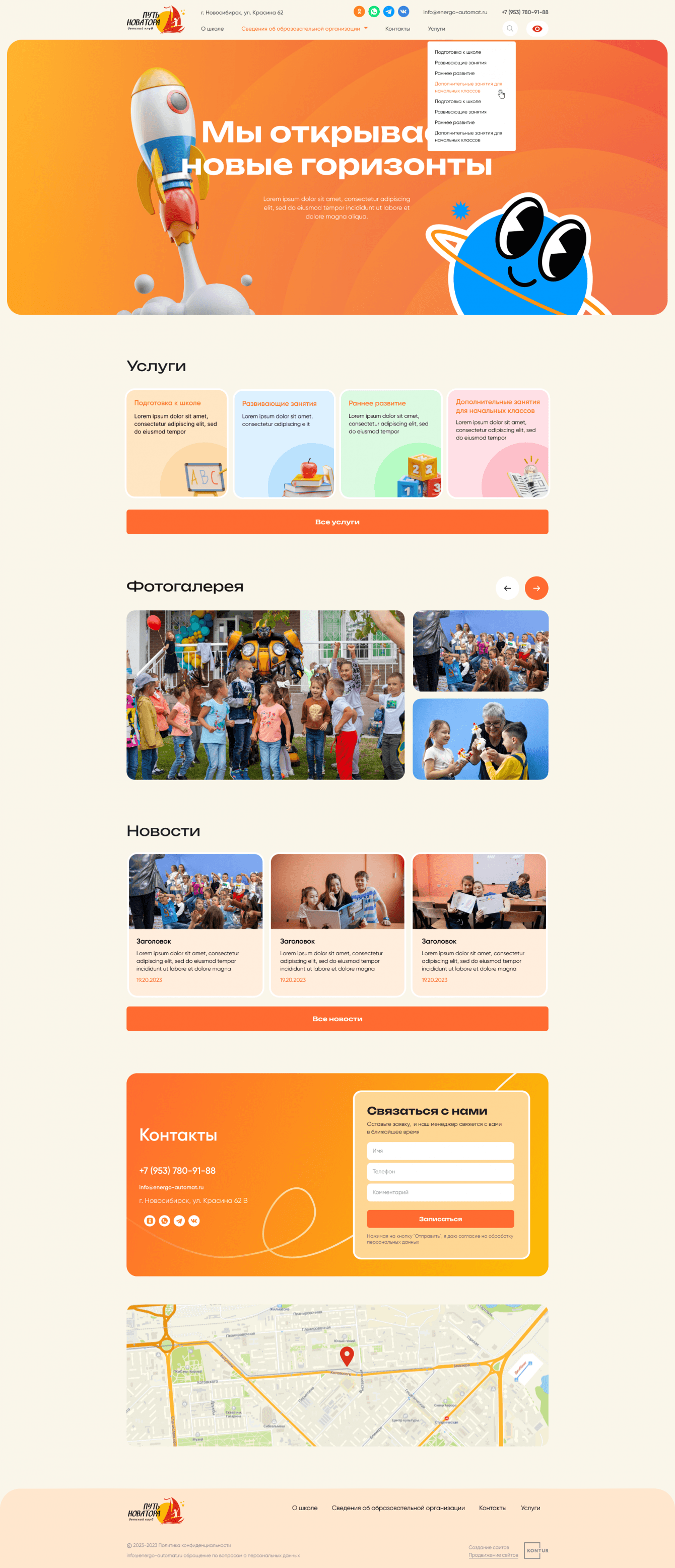 В итоге заказчику был предоставлен готовый сайт-визитка, позволяющий пользователям без лишних усилий ознакомиться с деятельностью клуба и его услугами. Теперь "Путь новатора" может начать привлекать новых учеников через свой новый сайт.