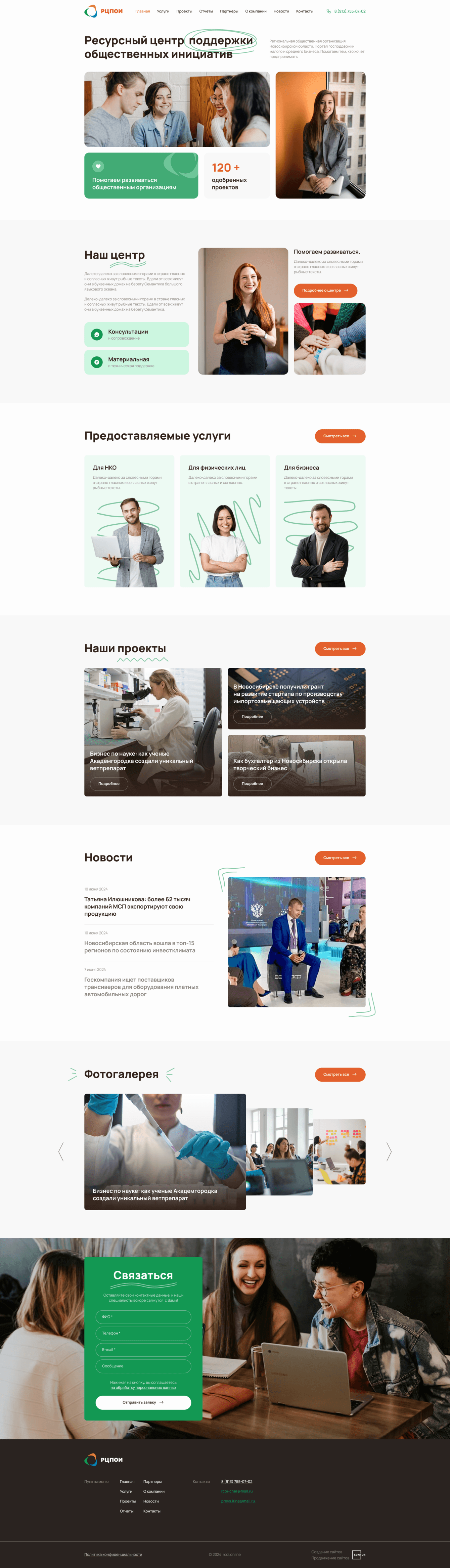 В итоге выполненных работ заказчик получил яркий современный сайт-визитку для привлечения и поддержки активных граждан и их инициатив. Пользователи могут подробно ознакомиться с деятельностью организации, узнать как получить поддержку или получить консультацию.