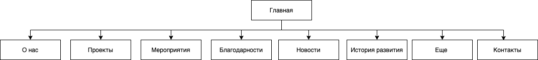 Мы изначально понимали, что структура сайта будет максимально простой, однако этот этап нам был необходим для определения количества страниц и их приблизительного содержания.