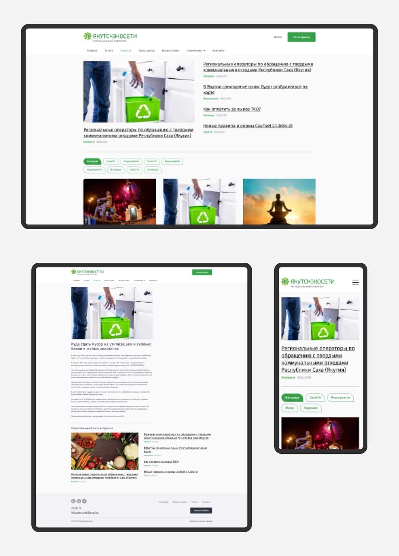 При разработке функционала большое внимание было уделено не только оказываемым услугам, но и позиционированию компании, потому что она принимает активное участие в жизни Якутска. На сайте были созданы специальные разделы для новостей компании, публикации статей, пресс-релизов и прочего полезного контента.