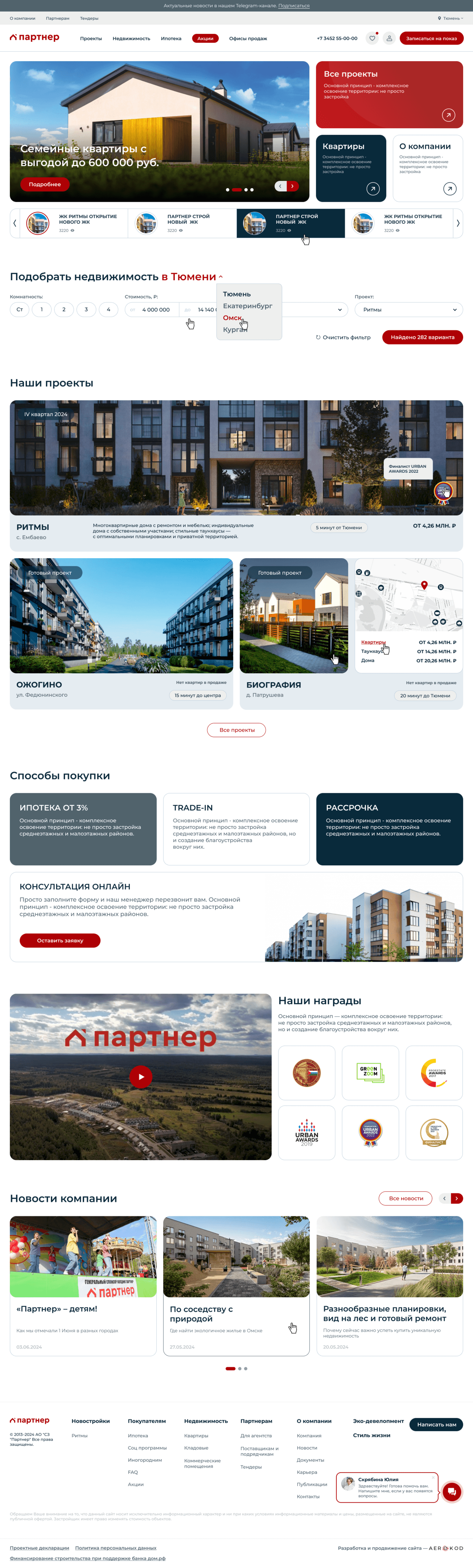 С появлением нового сайта потенциальные покупатели недвижимости застройщика Партнер-Строй получили следующие улучшения: