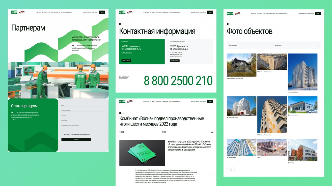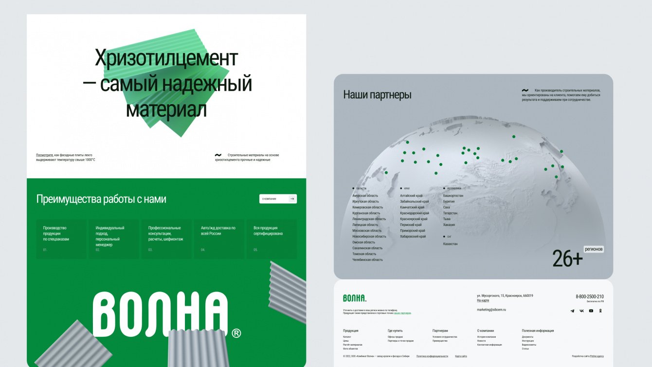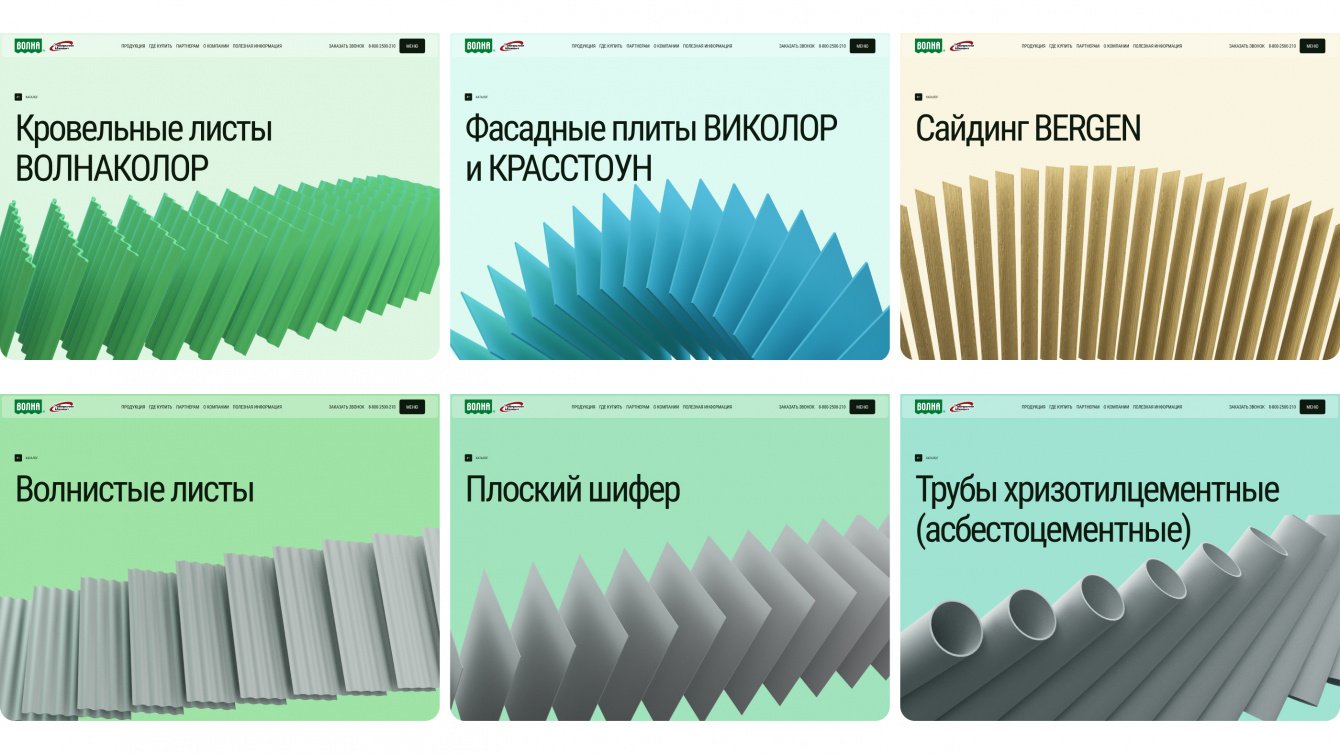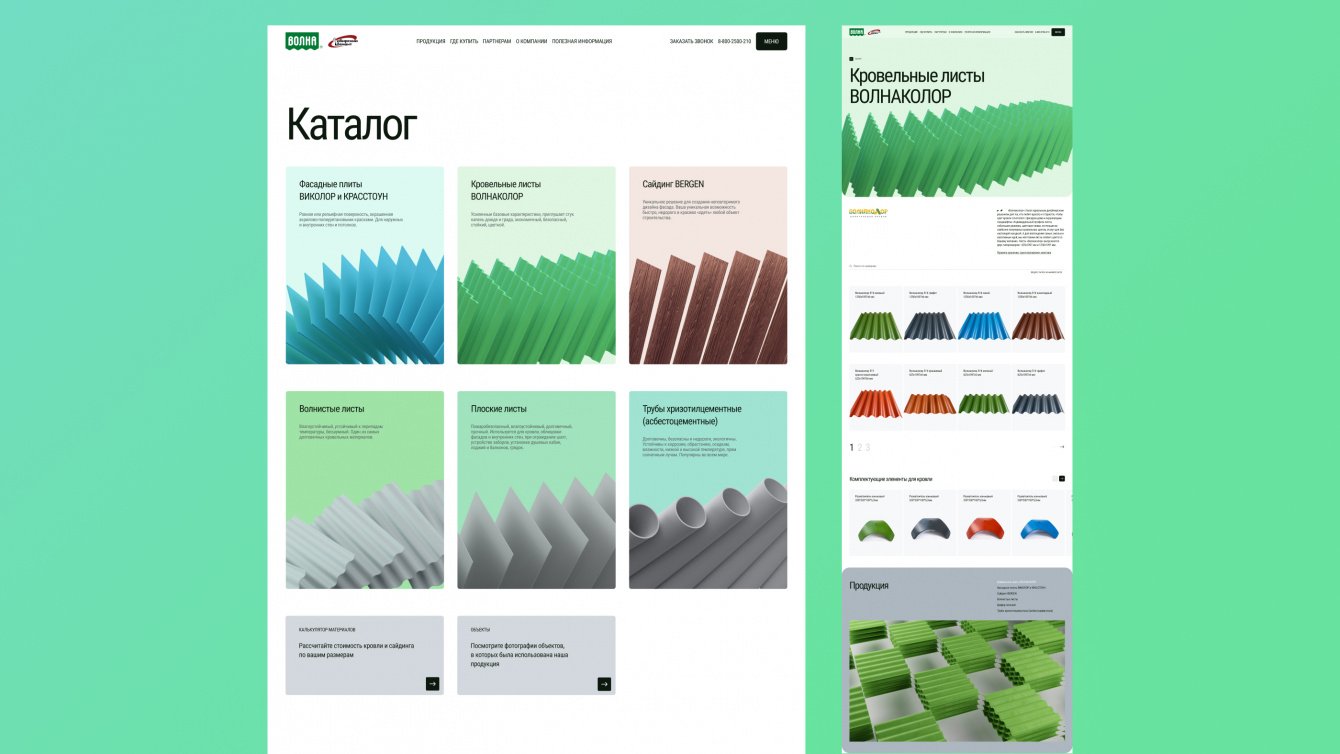 «Волна» — одно из ведущих предприятий в хризотилцементной промышленности России. Заказчику крайне важно показать клиентам свою экспертизу и актуальность в сфере кровельных решений. Предыдущая версия сайта имела устаревший дизайн и не была адаптирована для мобильных устройств, что затрудняло его использование. Поэтому нашей задачей стало создание современного и функционального веб-ресурса с впечатляющим дизайном.