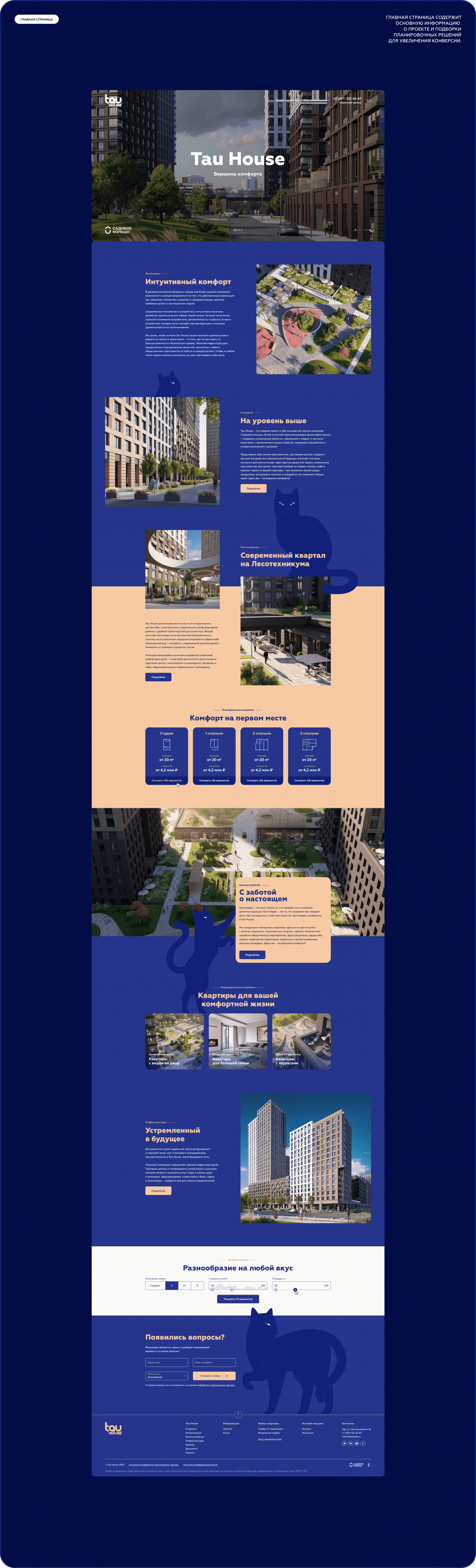 Разработать сайт для жилого комплекса Tau House.