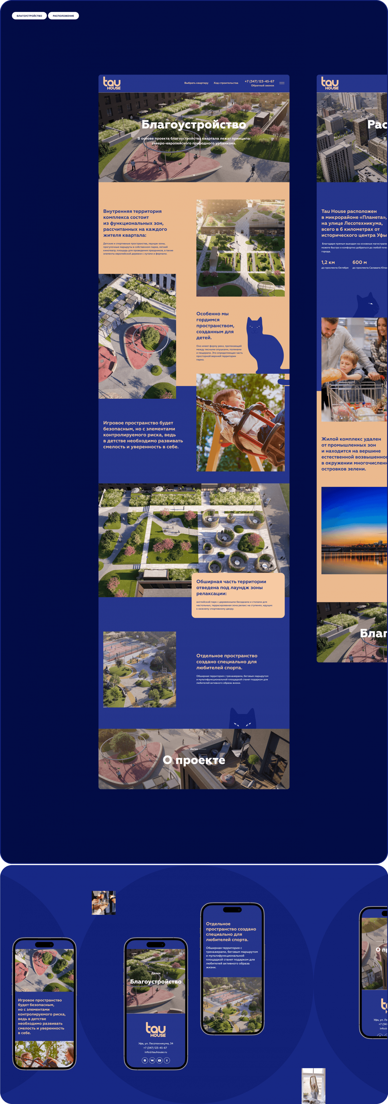 Мы разработали сайт для жилого комплекса Tau House, который строится в городе Уфе. Ключевой особенностью проекта является его яркий и запоминающийся фирменный стиль.