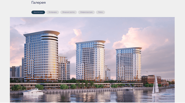 Основной цвет Галереи белый, отдельные элементы страницы выделяем фирменными цветами или элементами из бренд бука. Формат картинок – прямоугольник. Все открытия и отображения данной вкладки должны быть заранее оптимизированы скриптами. За основу взят Галерея (aquatoria.com)