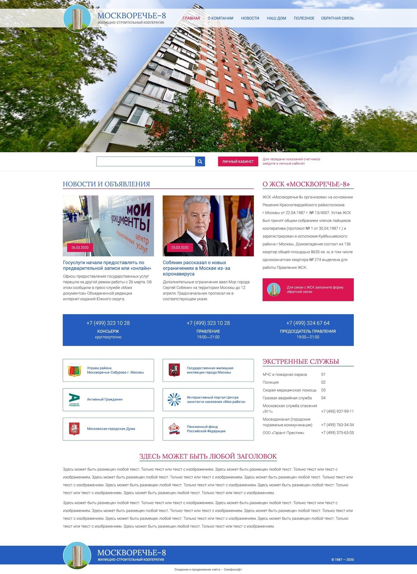 Разработка корпоративного сайта ЖСК «Москворечье-8»