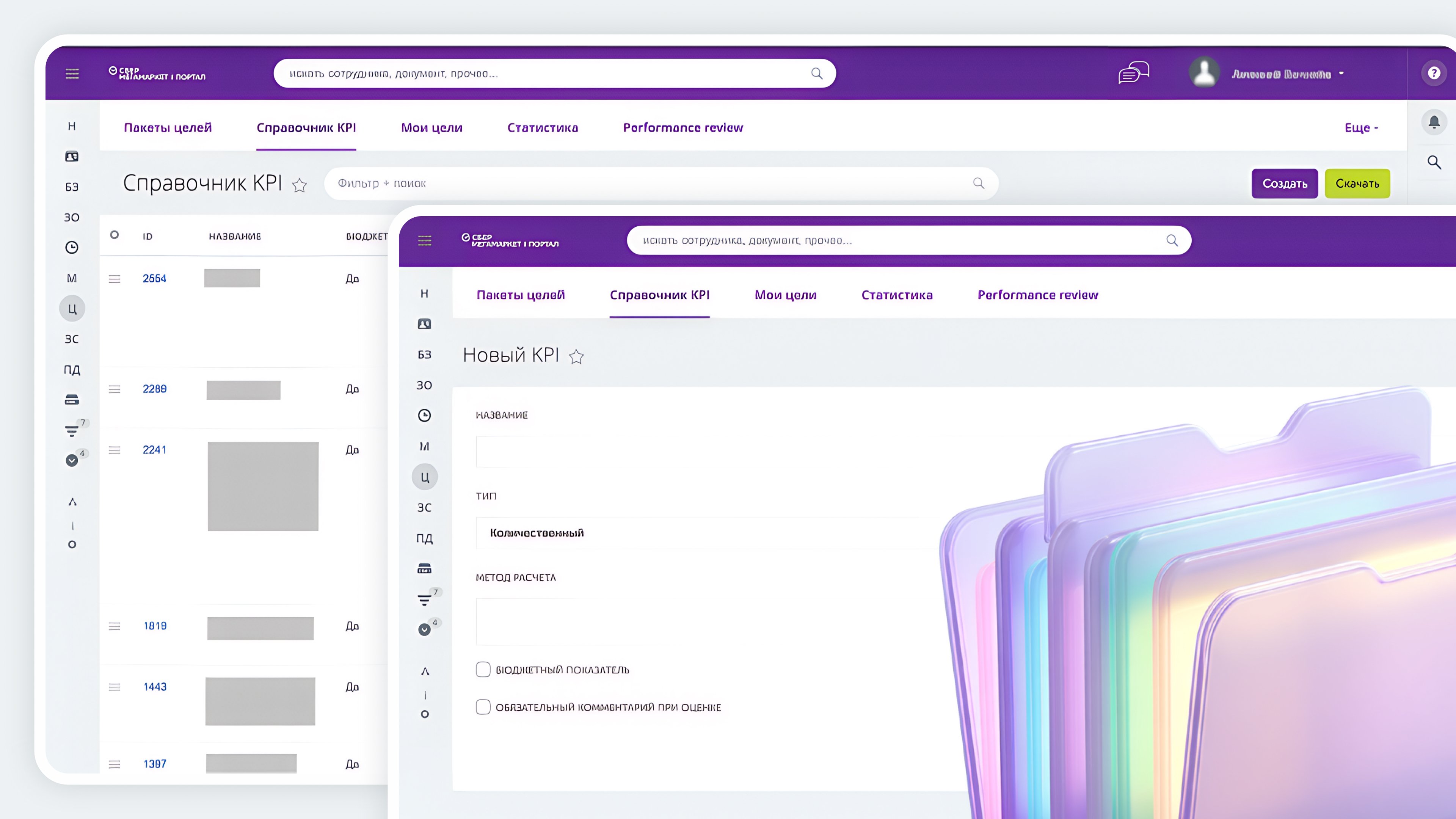 Был разработан модуль "Целеполагание" для СберМегаМаркета, который автоматизировал процессы работы с KPI, включая постановку целей, фиксацию фактических результатов, их верификацию и расчет уровня выполнения KPI для каждого сотрудника.