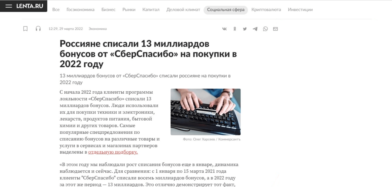 Команда «СберСпасибо» обратилась к нам с задачей поддерживать имидж крупнейшей программы лояльности в российских СМИ.