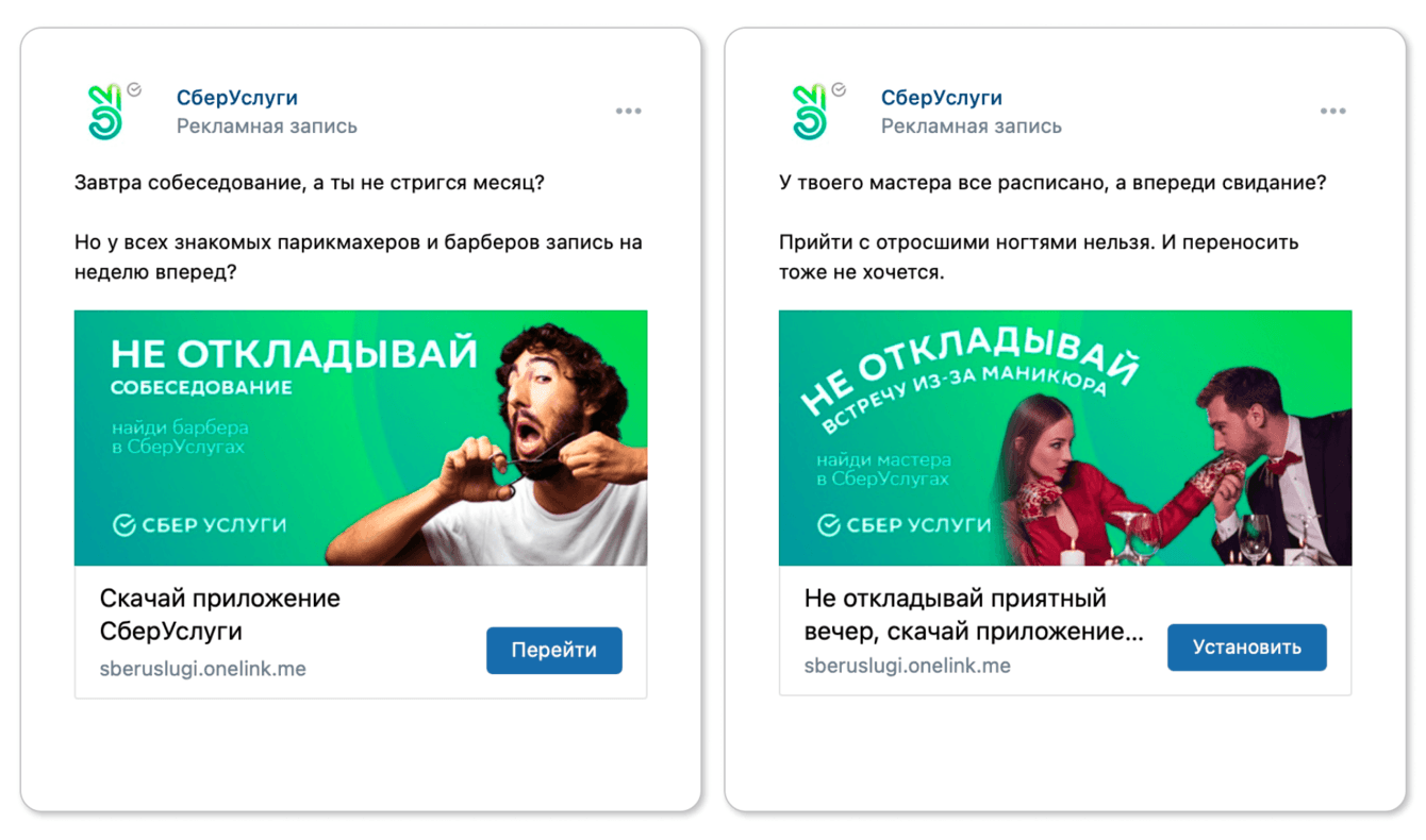 Целевая аудитория приложения — молодежь, поэтому рекламную кампанию «СберУслуг» в соцсетях мы решили сделать легкой и веселой в пику конкурентам, которые по ТВ вещали о базовых вещах вроде профессионализма исполнителей и безопасности сделки.