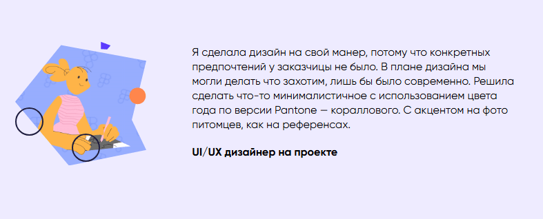 «С заказчицей мы общались не напрямую, поэтому основной процесс утверждения нас не коснулся. В целом им все нравилось, были правки только по логике расположения блоков и каким-то небольшим моментам вроде палитры».