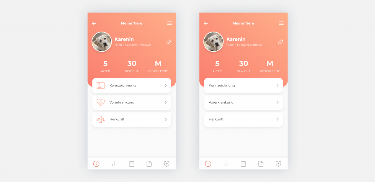 Мы на это дело посмотрели и решили делать тестовый экран. Начали с одного из главных — профиля питомца.