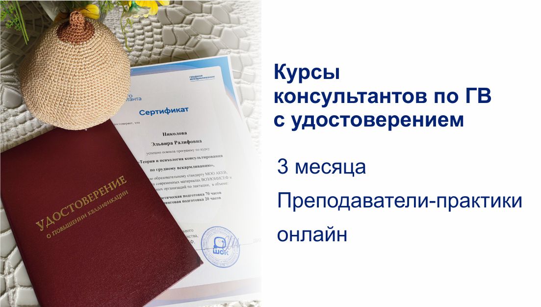 60% - это были мамы, которые успешно наладили процесс вскармливания, вдохновились этим процессом и решили стать консультантом по ГВ, чтобы получить дополнительный заработок в декрете. 30% - это были специалисты, которые работают с кормящими мамами по долгу своей службы – педиатры, неонатологи, медсестры, акушеры, доулы и т.д.