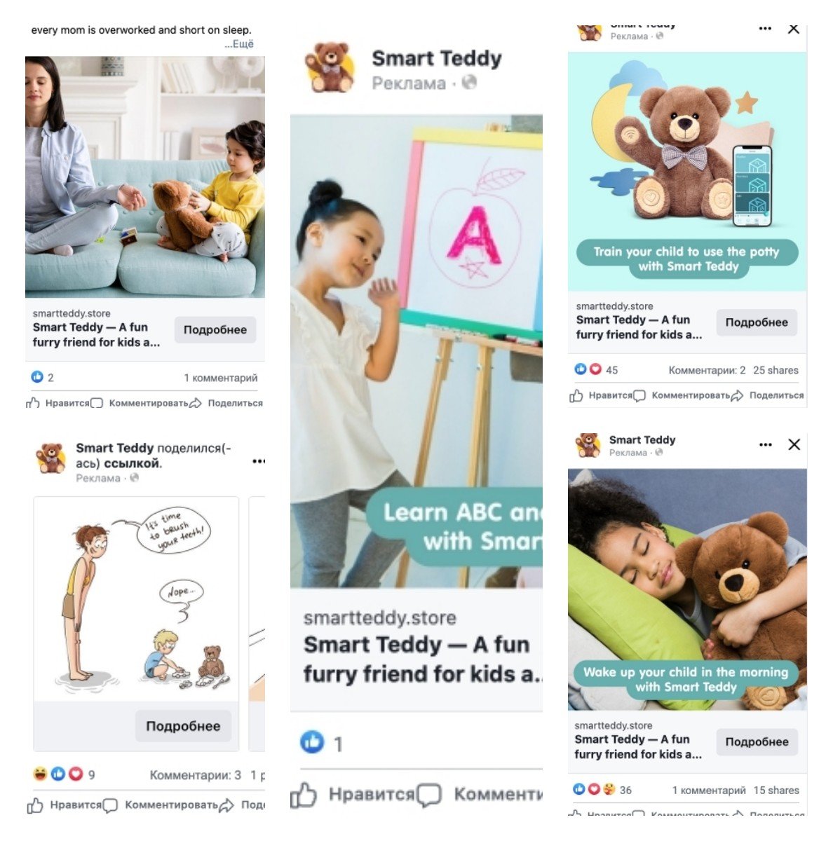 Контекстная реклама: Настроили текстовые рекламные кампании в Google и Яндекс по запросам: брендовые (поиск именно этой игрушки после публикаций блогеров), околобрендовые ("говорящий медведь", "мишка со сказками" и т.д.), тема подарка ("что подарить ребёнку на 4 года" и другие). Настроили ремаркетинг и ретаргетинг.