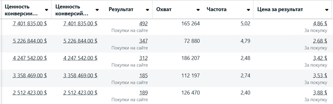 – Средняя стоимость заказа из рекламы: $2.23–$2.97.