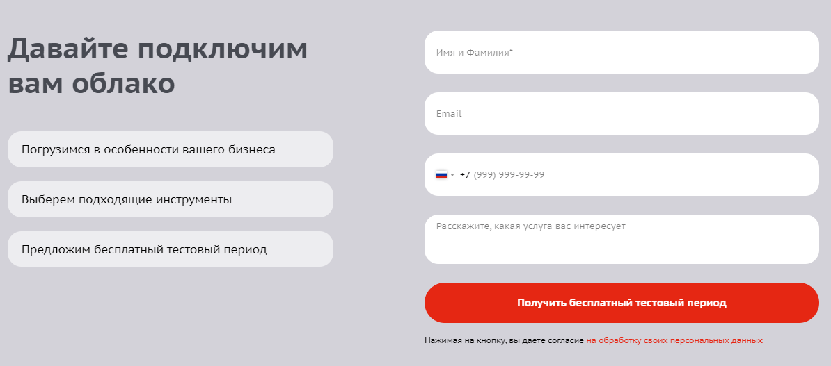 Данные из формы передаются менеджерам «ТТК.Облако» — они связываются с клиентами и помогают подключить тестовый период