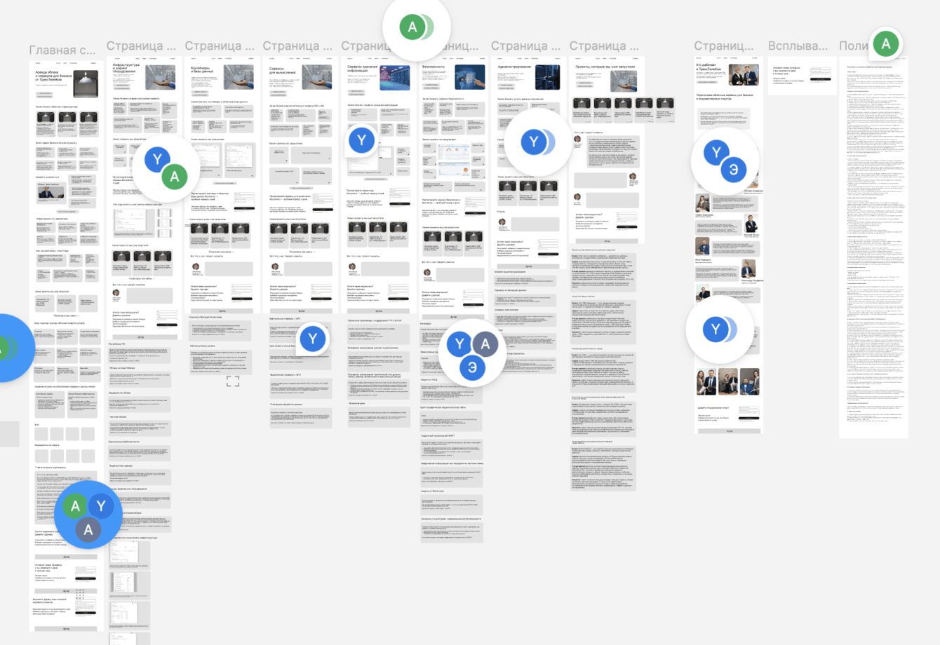 Все страницы собрали в один большой макет в Figma — клиент оставлял там комментарии, а мы вносили правки.