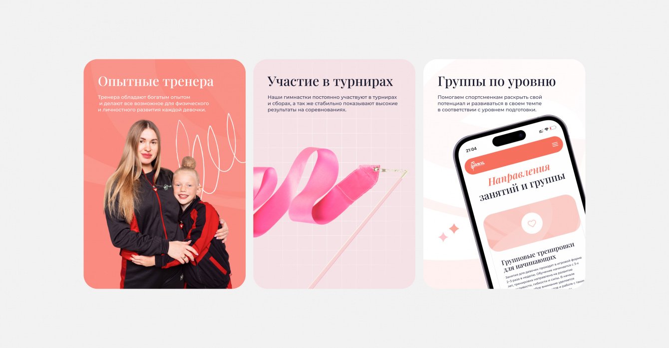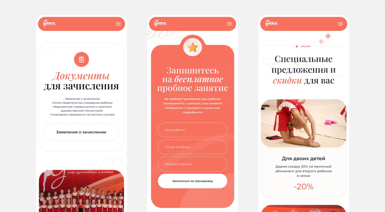 Мы разработали новую стилистику сайта, сделав его актуальным, соответствующим духу художественно гимнастики. Продуманная логика страниц улучшила навигацию и пользовательский опыт.