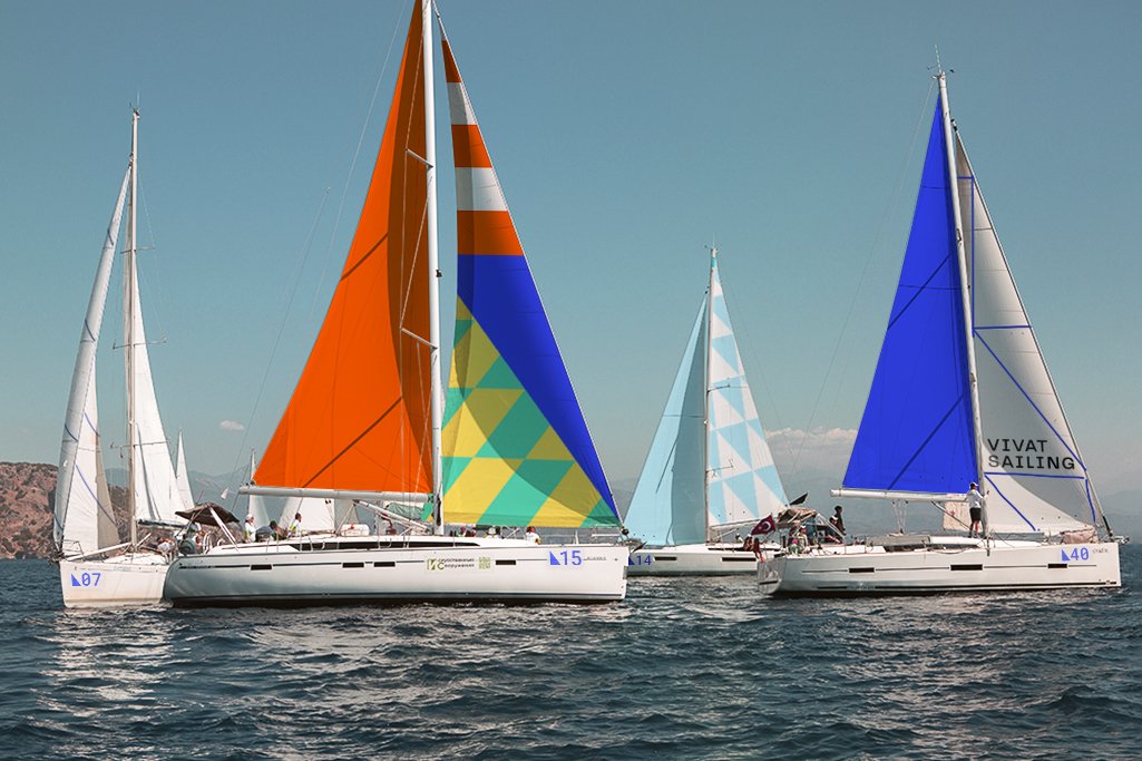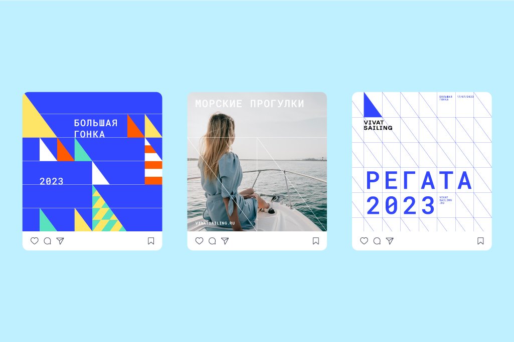 В ответ на запрос клиента мы взяли самое простое и понятное — геометрию паруса, добавили яркий язык сигнальных флажков и создали стиль, который позволяет не только увидеть и распознать издалека свои паруса, но и структурно подать информацию о предстоящем путешествии.