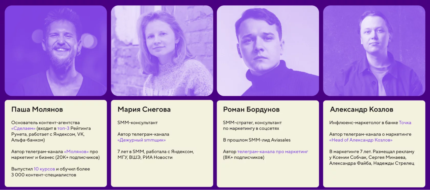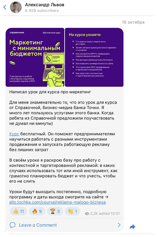 Некоторых экспертов Справочная предложила от себя — например, урок по продвижению через блогеров мы готовили вместе с инфлюенс-маркетологом Точки, Александром Козловым.