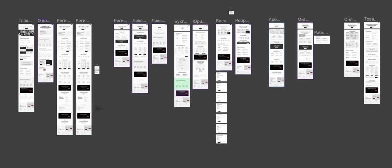 В процессе обсуждения поняли, что среди услуг есть «якорные» и второстепенные — решили, что для якорных услуг разработаем уникальный дизайн (на них будет вестись основной трафик; они должны выделяться), для остальных — сделаем все на стандартных блоках.