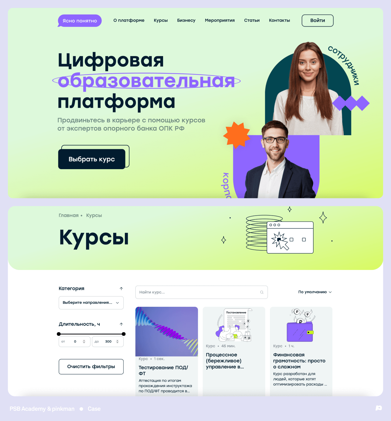 1. Было две платформы — Академия ПСБ и «Ясно понятно» — с разным дизайном и дублирующими функциями