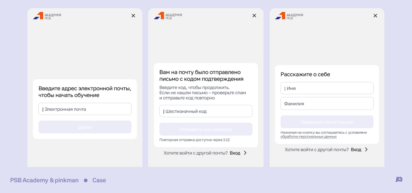 Важная особенность — обычно внешняя и внутренняя части образовательных платформ разделены. Сам сайт и платформа для обучения даже зачастую имеют разную авторизацию. Мы сразу сделали один пользовательский путь без дополнительных переходов, логинов и писем.