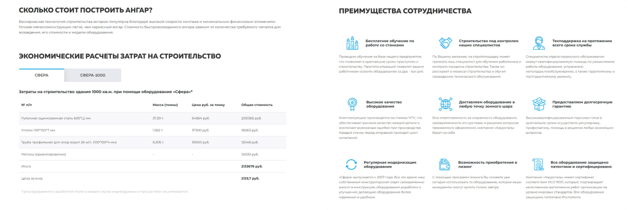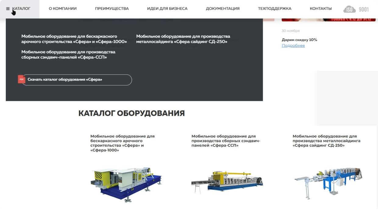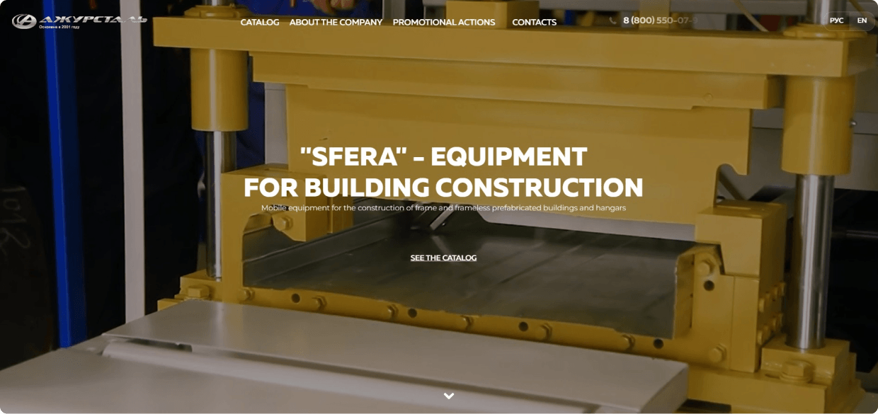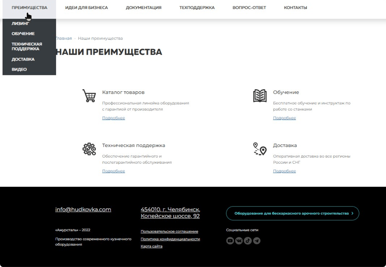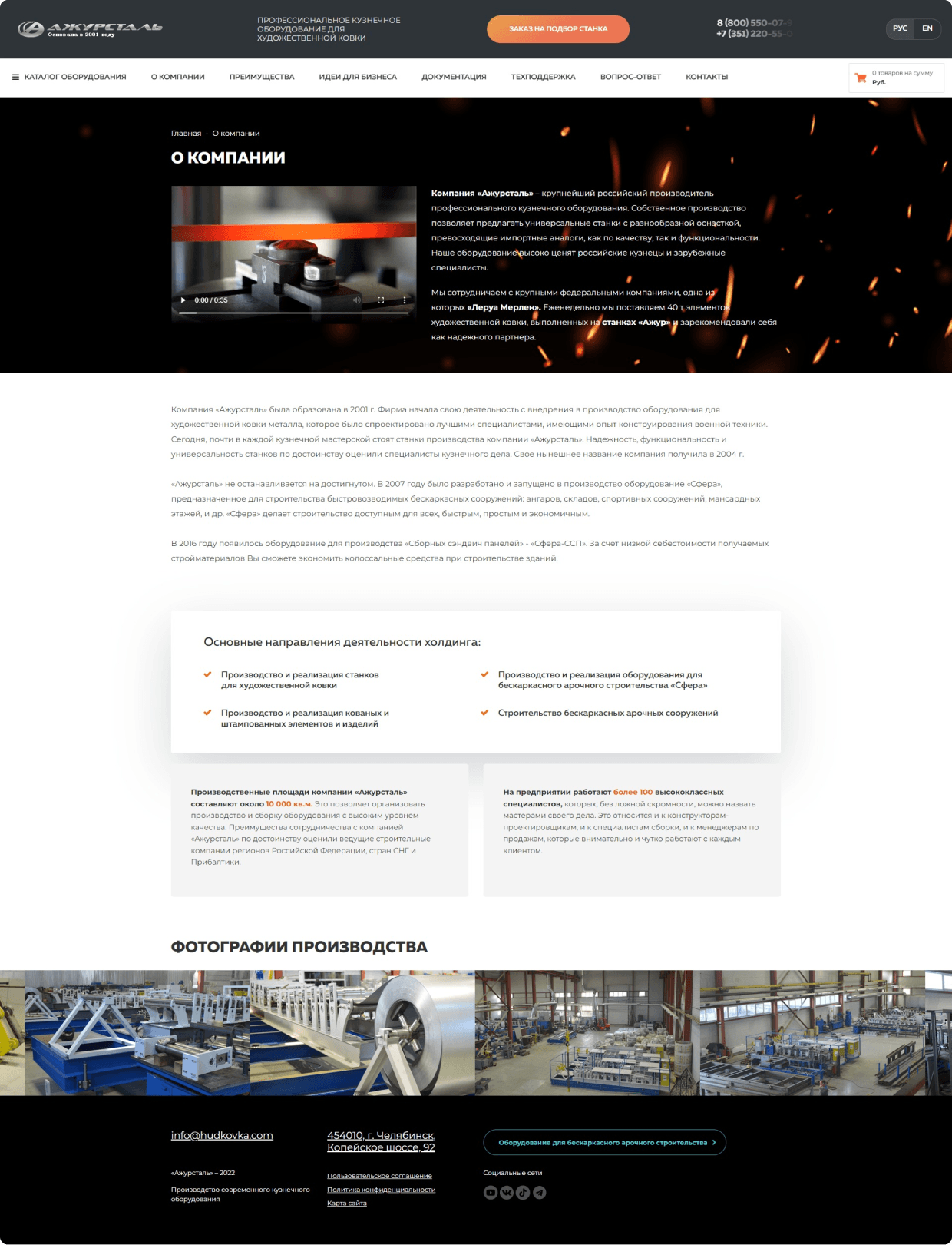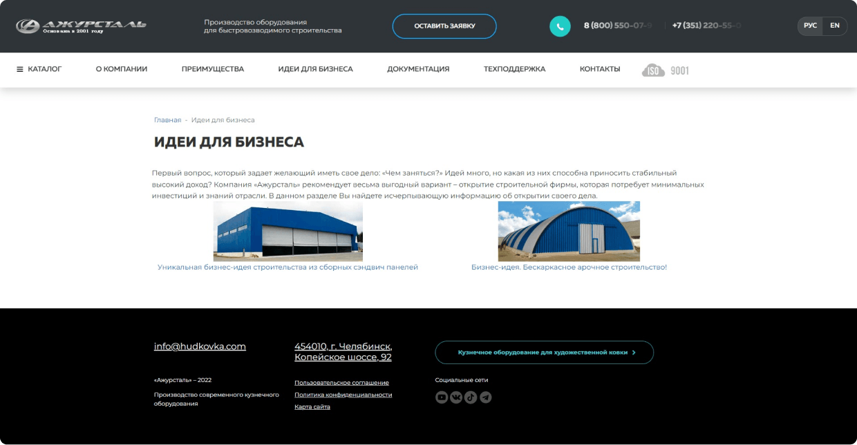 У клиента было 2 сайта с «уставшим» дизайном: кузнечное оборудование и оборудование для строительства быстровозводимых зданий. По второму проекту опубликован отдельный кейс.