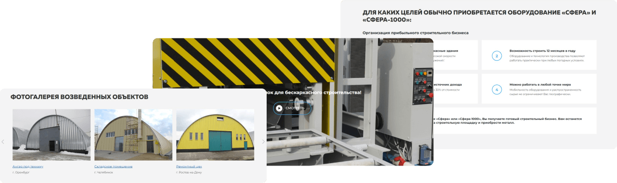 Сделать удобный сайт для продажи через интернет оборудования для строительства зданий «СФЕРА».