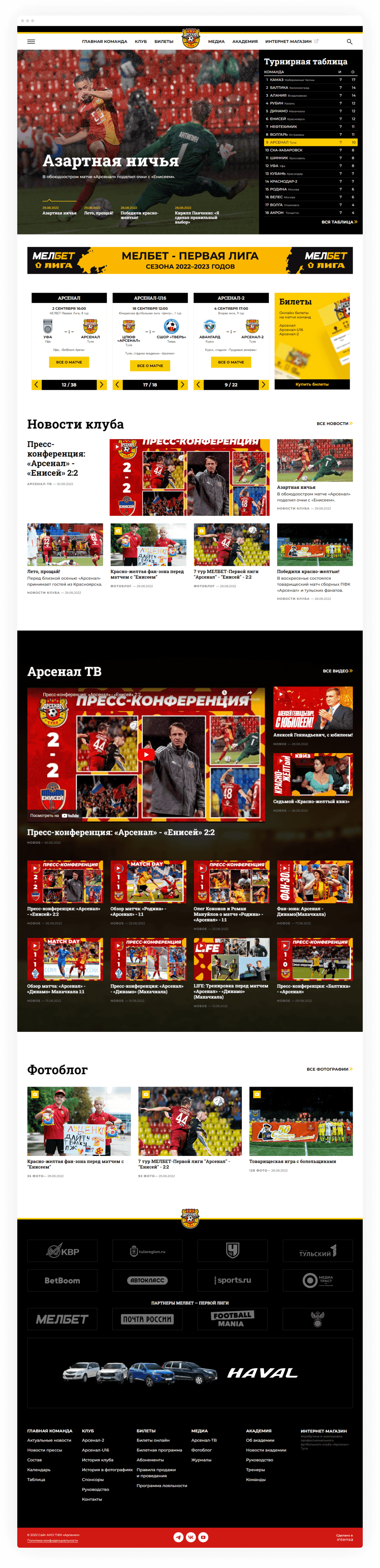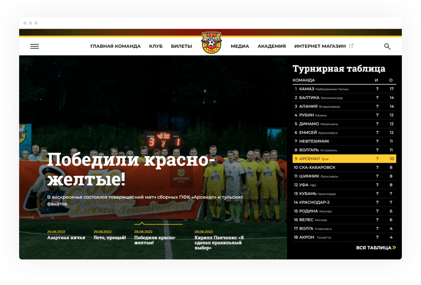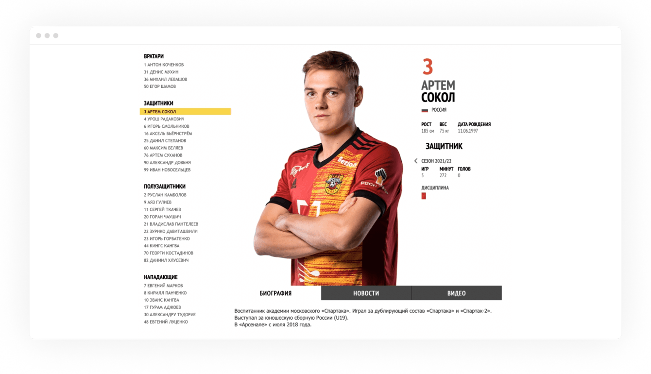 За референс взяли сайт французского футбольного клуба PSG. На него ориентируются многие футбольные клубы России, поэтому для болельщиков такая верстка понятная и привычная.