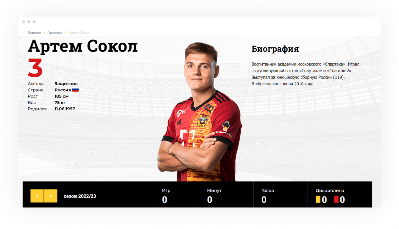 Адаптировали интерфейсные элементы, сохранив айдентику и фирменные цвета клуба «Арсенал».