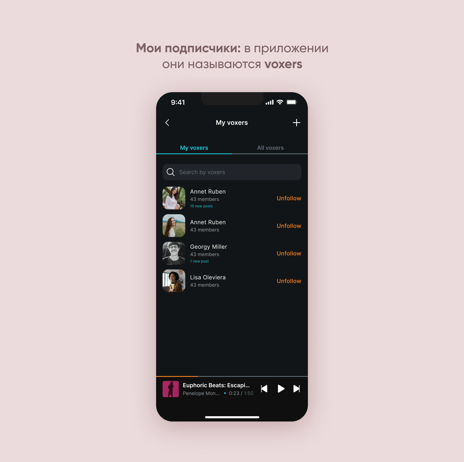 Главная функция — прослушивание аудиоконтента. Но у voxtox было много других фич, которые отличали его от стриминговых сервисов вроде Spotify или российской Яндекс.Музыки.