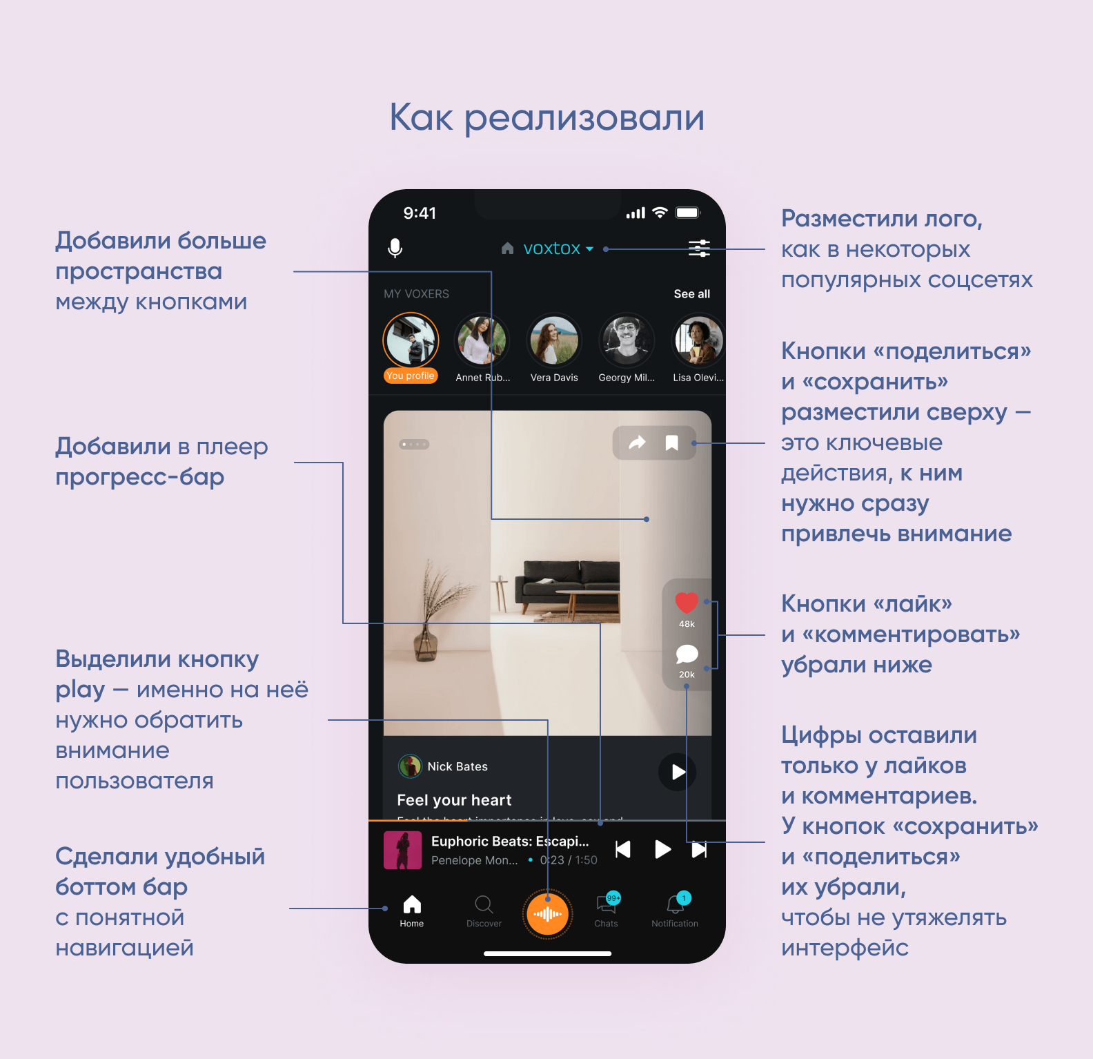 И вот такой концепт сделали наши дизайнеры для voxtox в рамках тестового задания.