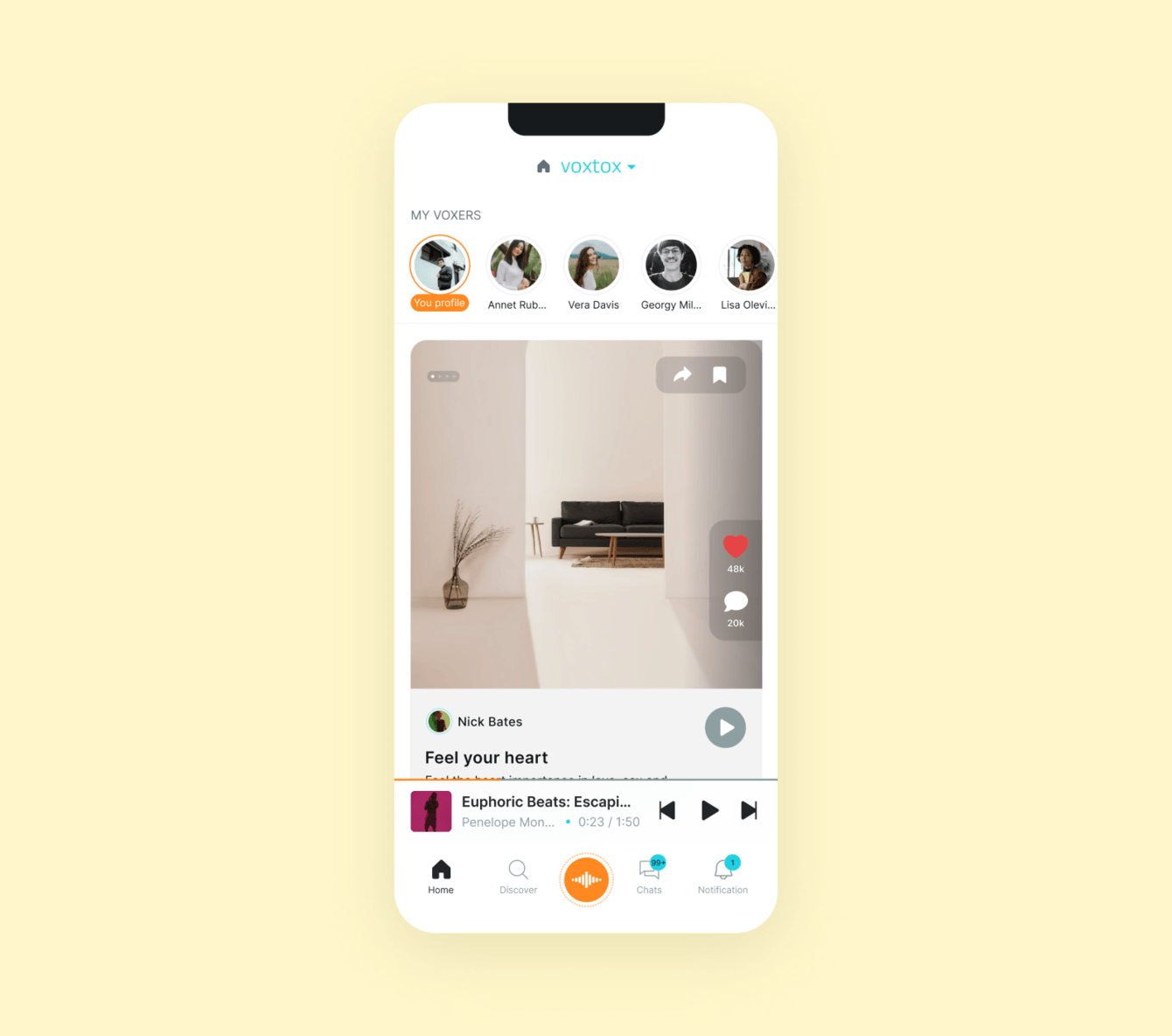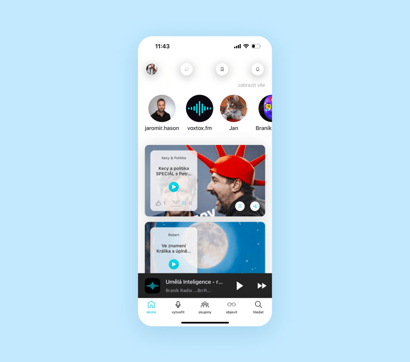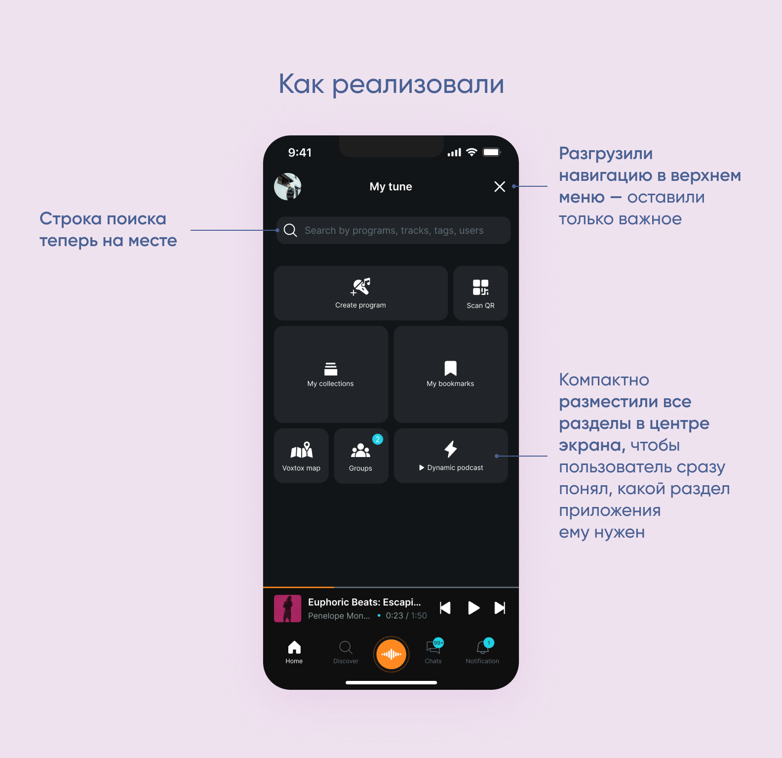 К нам обратился заказчик из Чехии — он работает директором по продукту в компании voxtox. Ребята решили сделать не просто музыкальный стриминг, а платформу, где пользователи могут слушать совершенно разный аудиоконтент: музыку, подкасты, новости и даже голосовые сообщения.