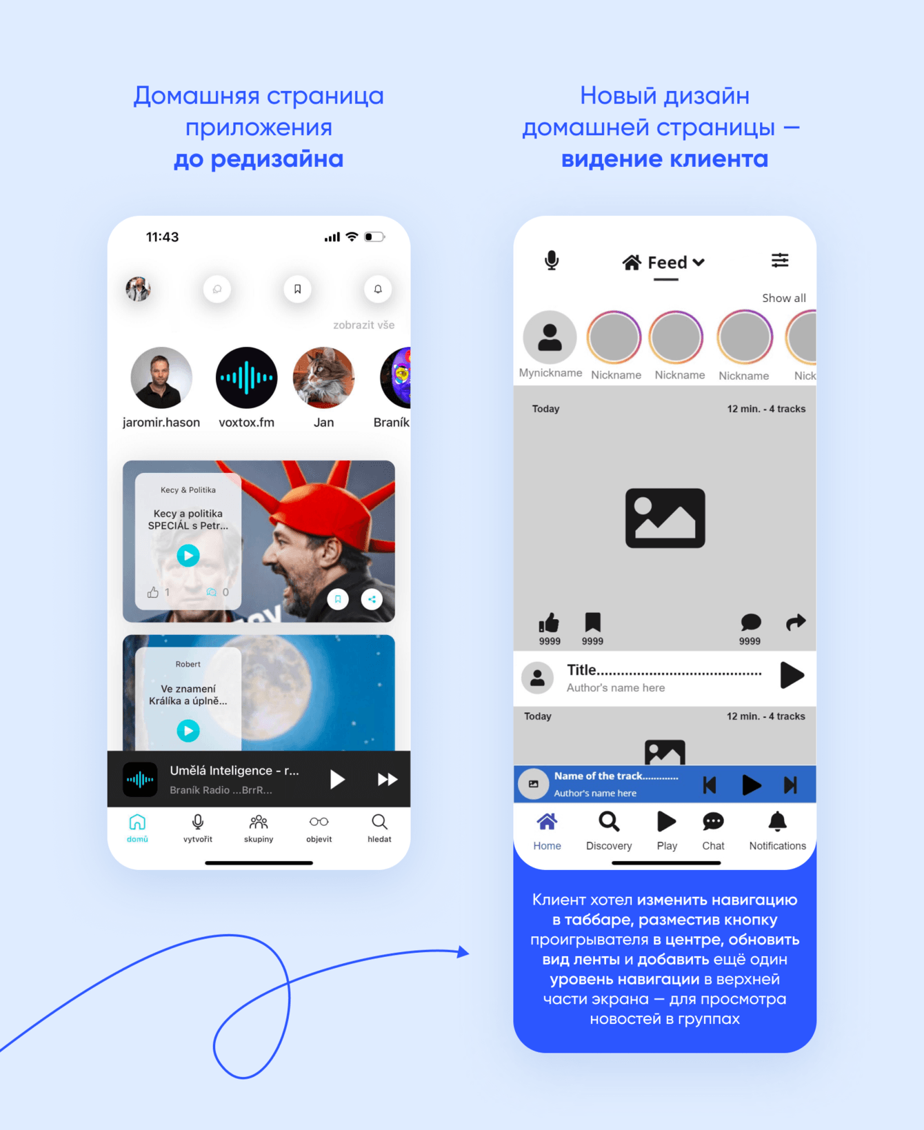 В этом кейсе расскажем, как сделали редизайн приложения, которое должно заменить пользователю радио, и покажем, как превращаем черно-белые мокапы от заказчика в настоящий продукт.