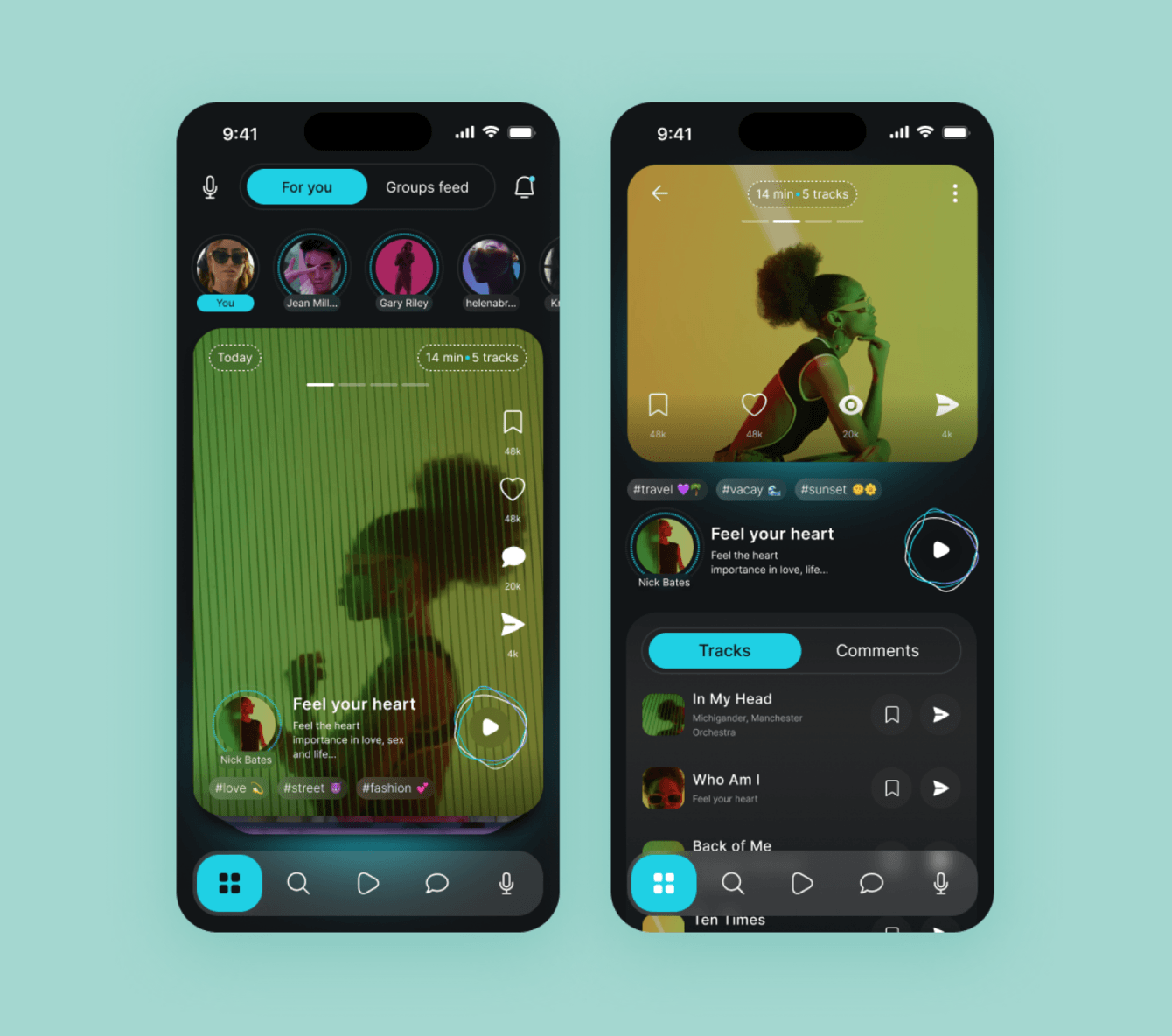 Директор по продукту искал портфолио с интерфейсами для соцсетей и аудиостримингов. Ему очень понравились наши Dribbble шоты и он связался с нами.