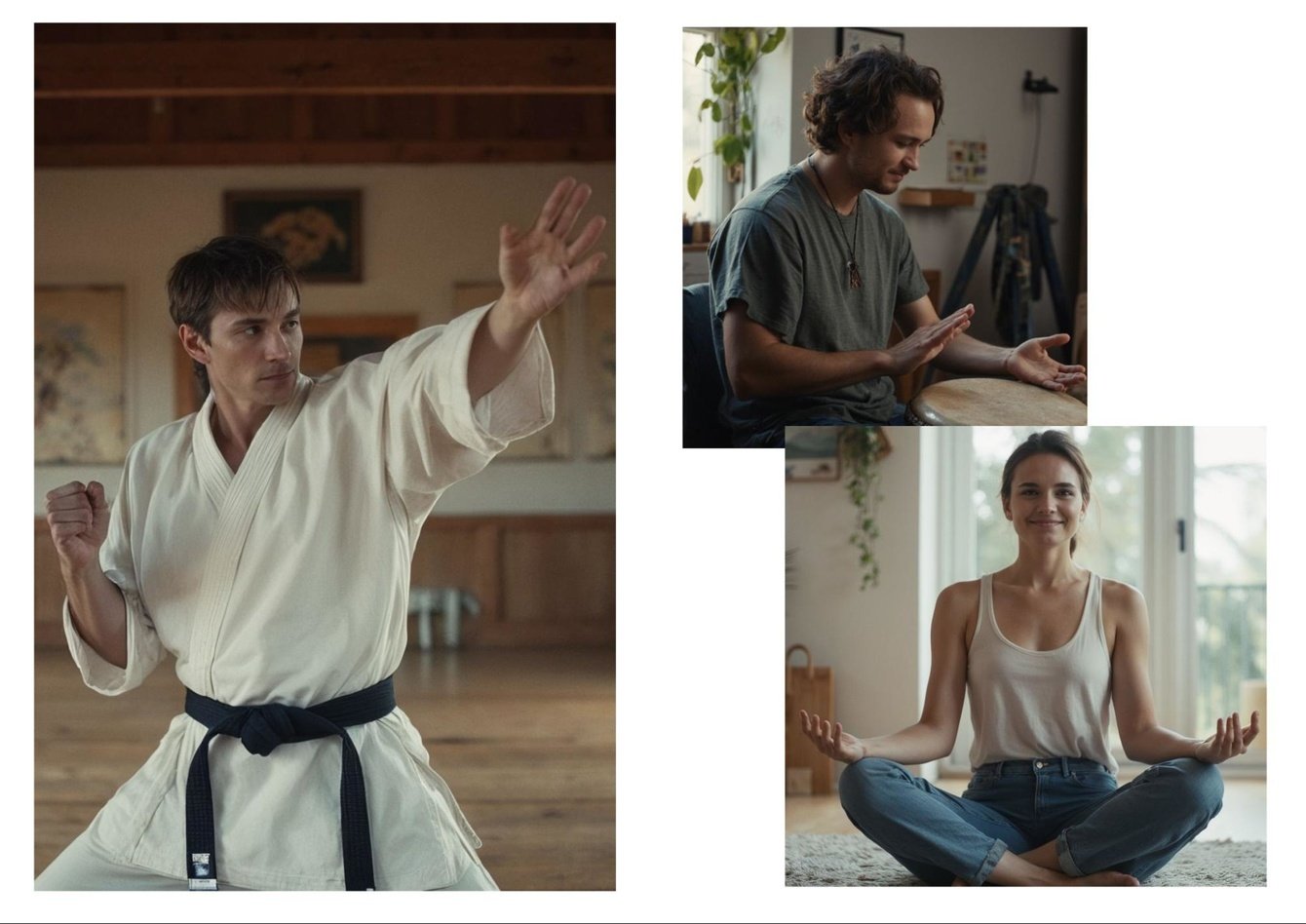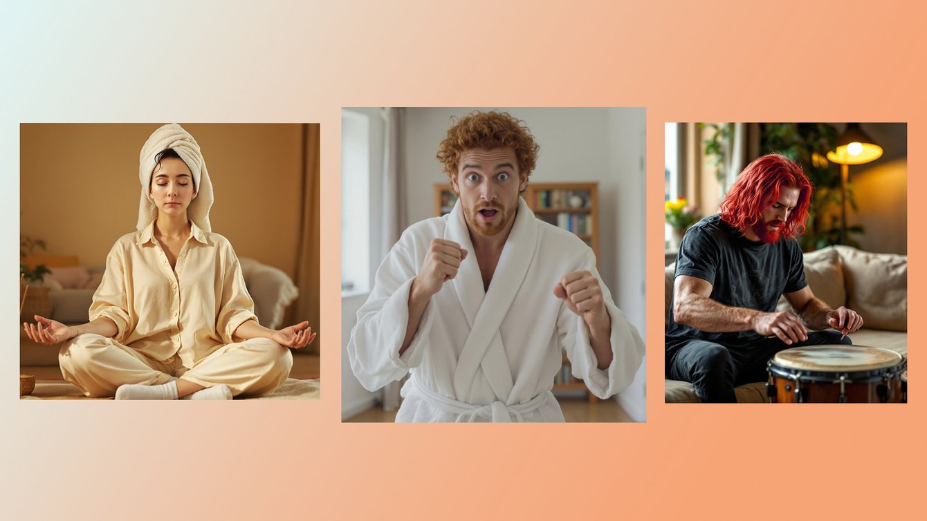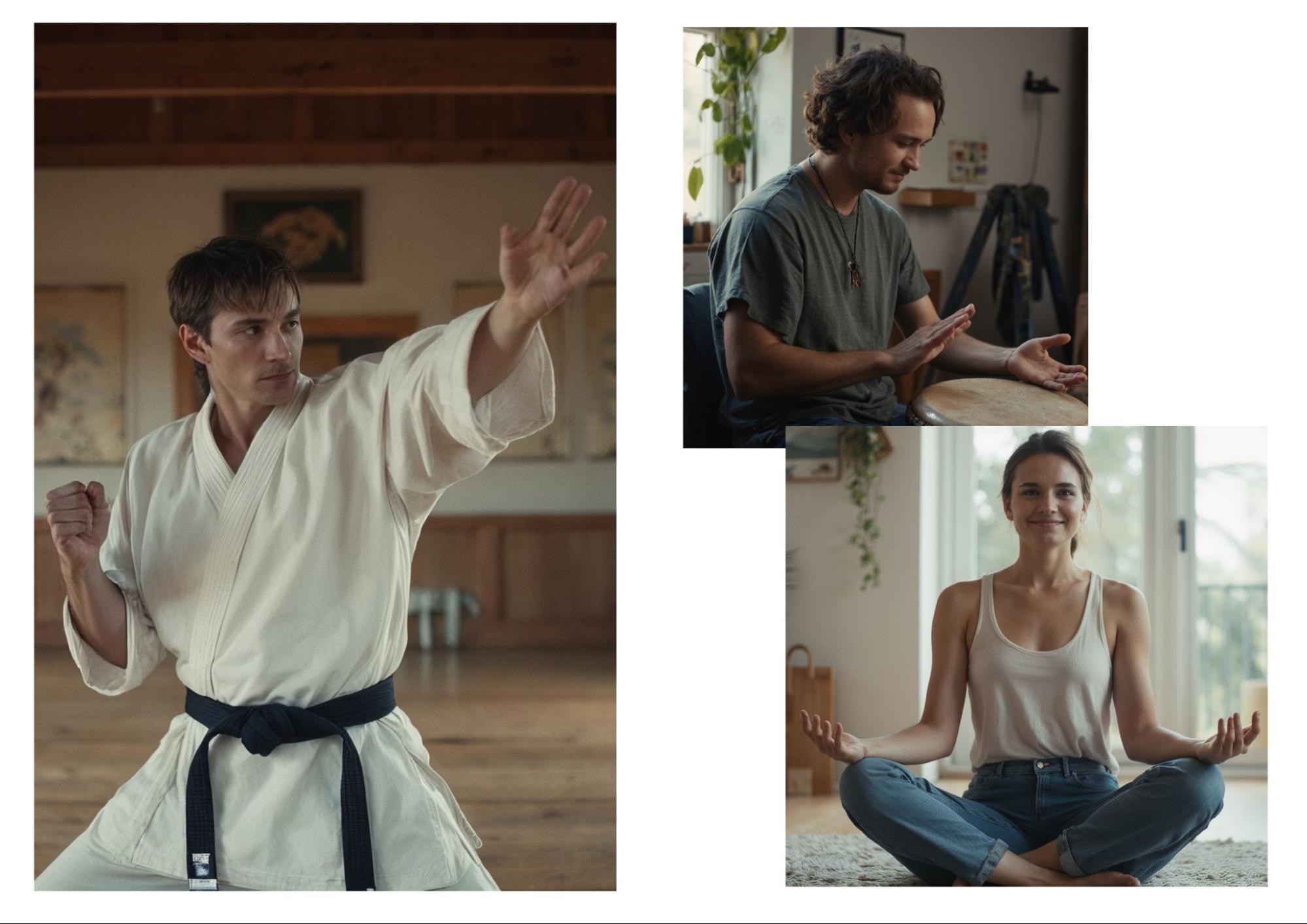 В ролике для «ВкусВилл» нужно было показать трех людей, которые заряжаются энергией по-разному: один играет на барабанах, другой медитирует, а третий отрабатывает боевые приемы.