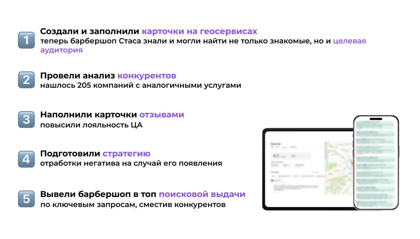 За три месяца управления репутацией барбершоп Стаса вошел в топ 10 заведений города, обойдя более сотни конкурентов в нише. А также: